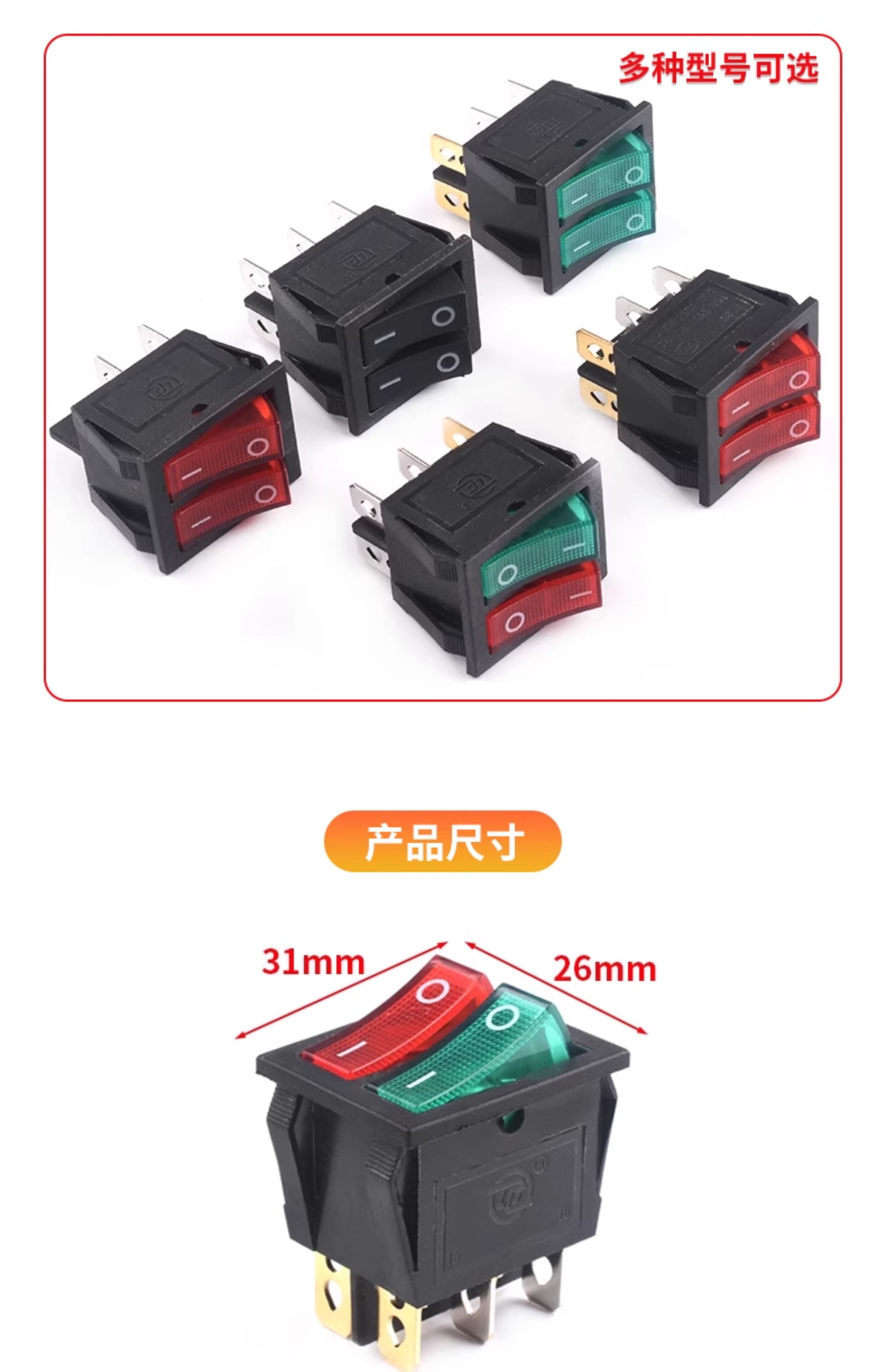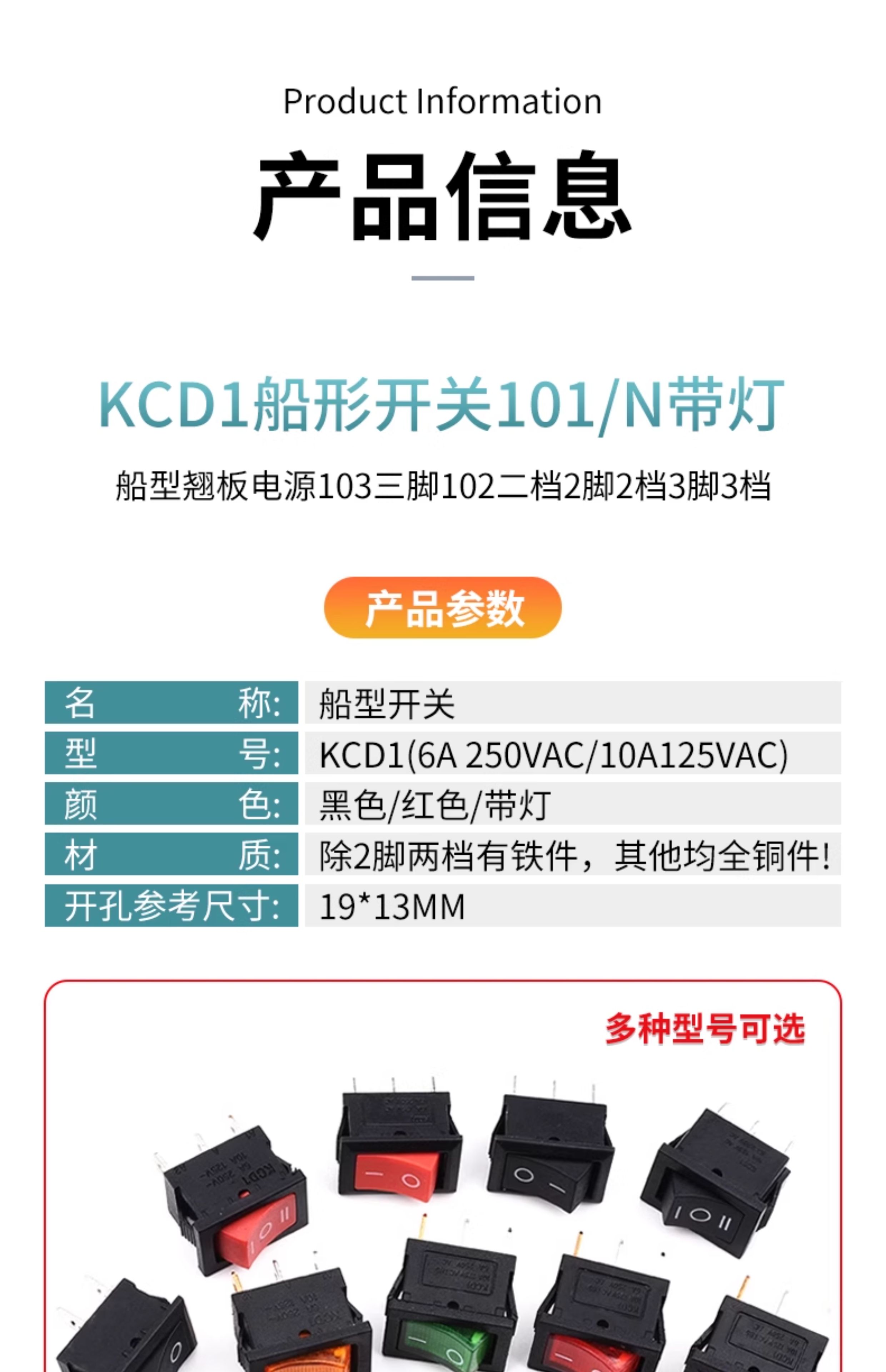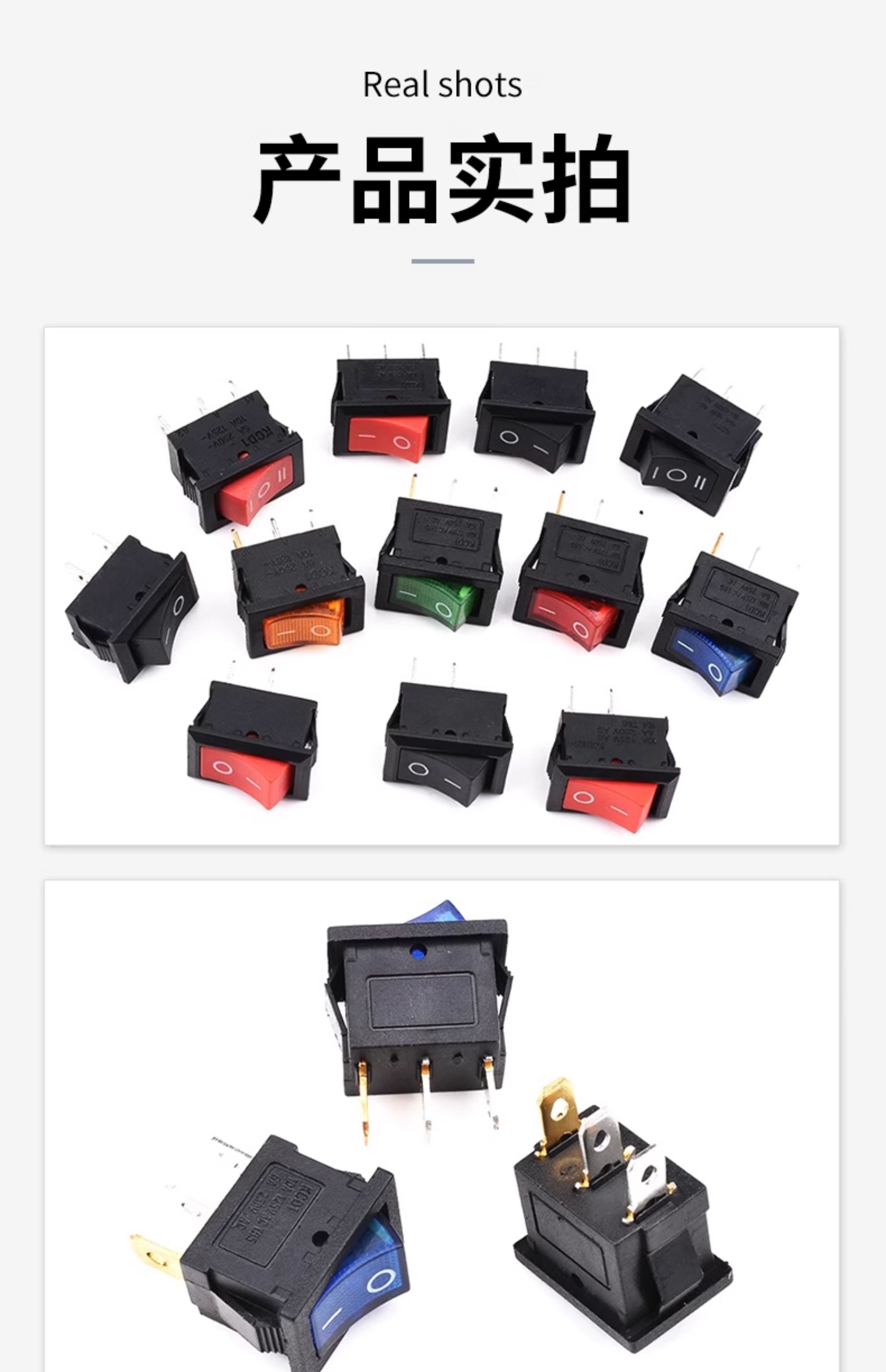 KCD1 boat-shaped switch 101/N boat-shaped rocker power supply with light 103 three-pin 102 second gear 2-pin 2-speed 3-pin 3-speed KCD1 yellow copper light with light connected to 220V 2 pcs No Specifications
