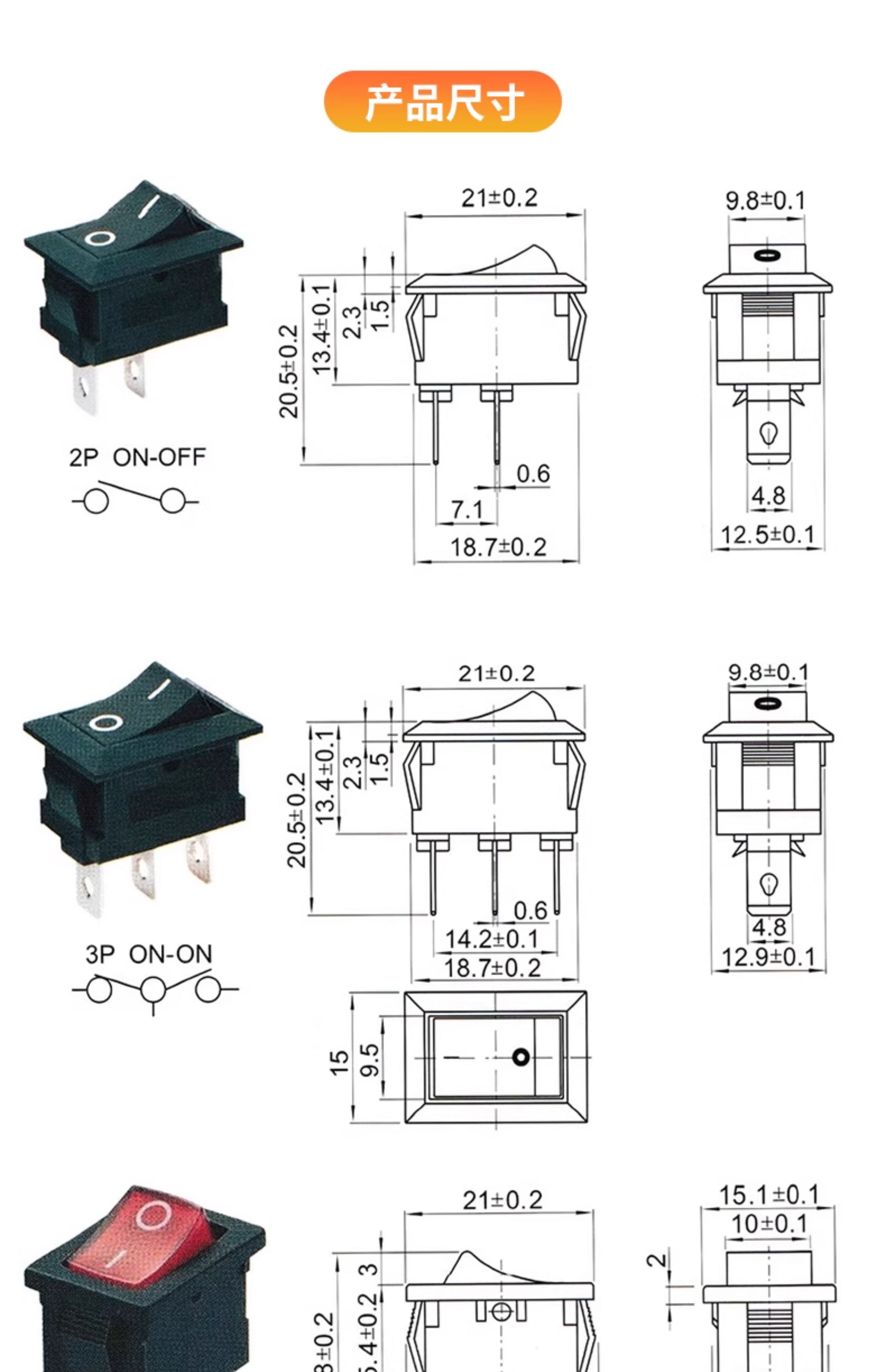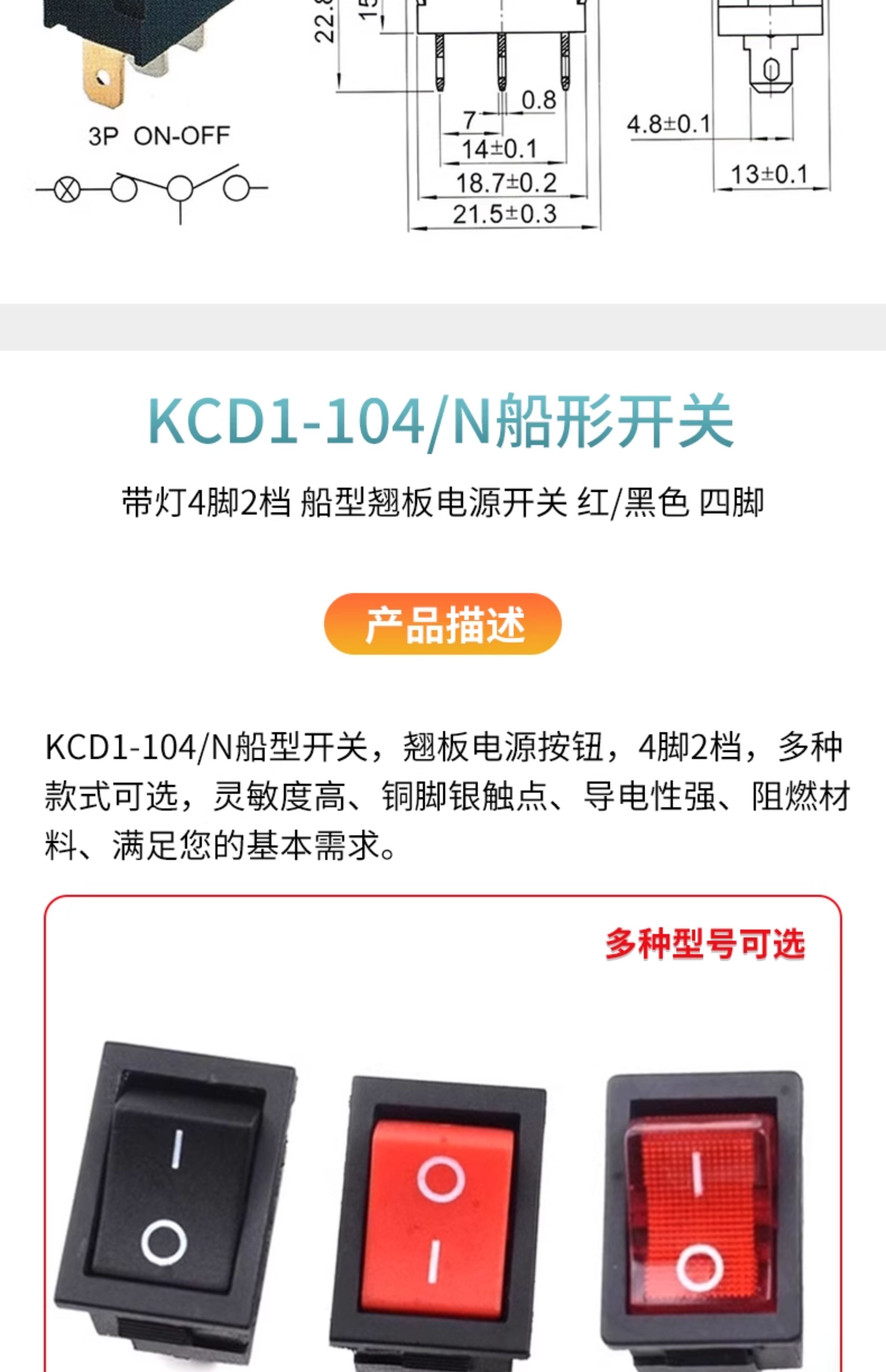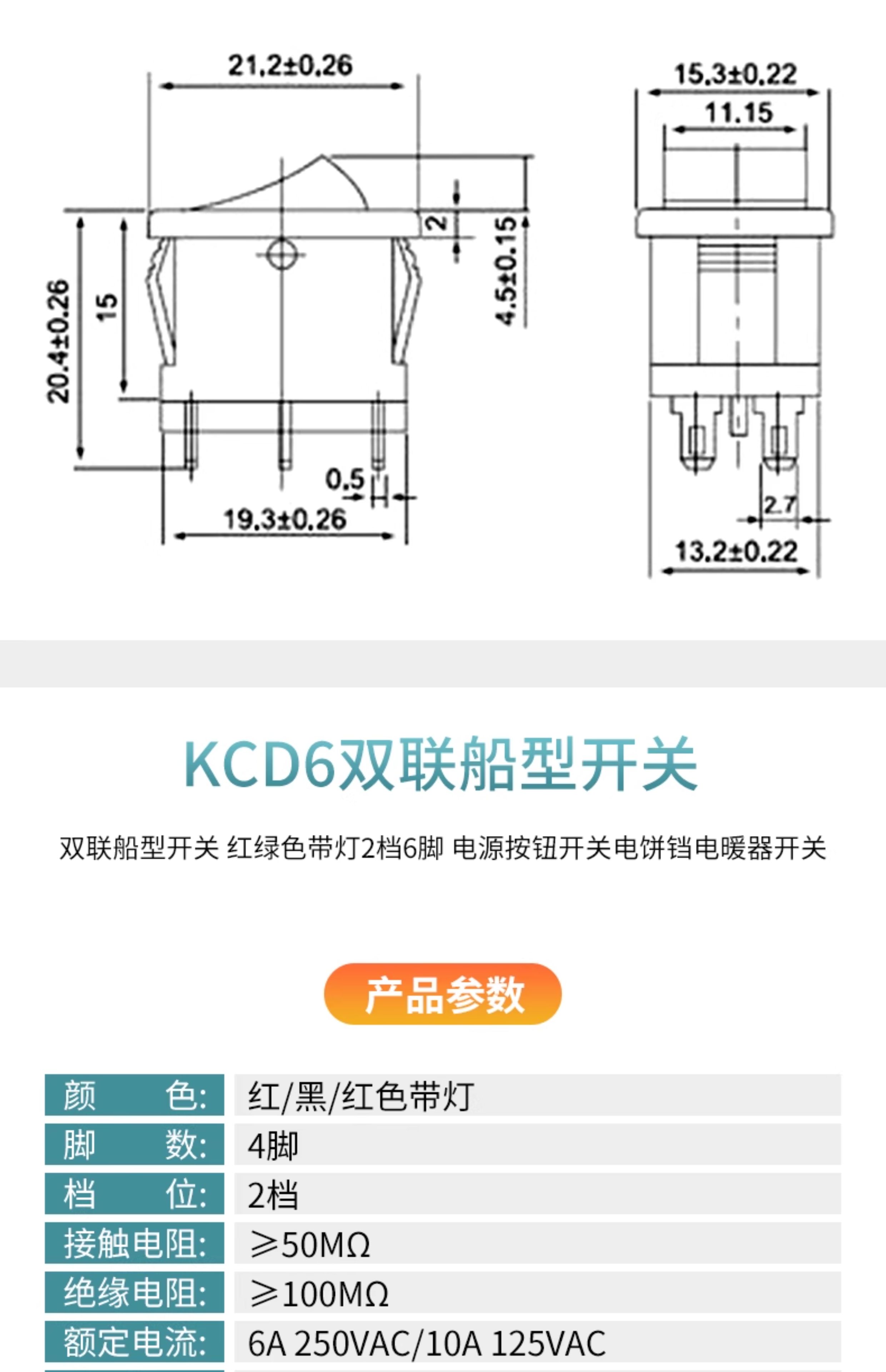 KCD1 boat-shaped switch 101/N boat-shaped rocker power supply with light 103 three-pin 102 second gear 2-pin 2-speed 3-pin 3-speed KCD1 yellow copper light with light connected to 220V 2 pcs No Specifications