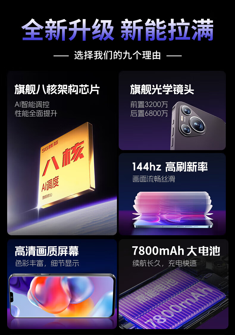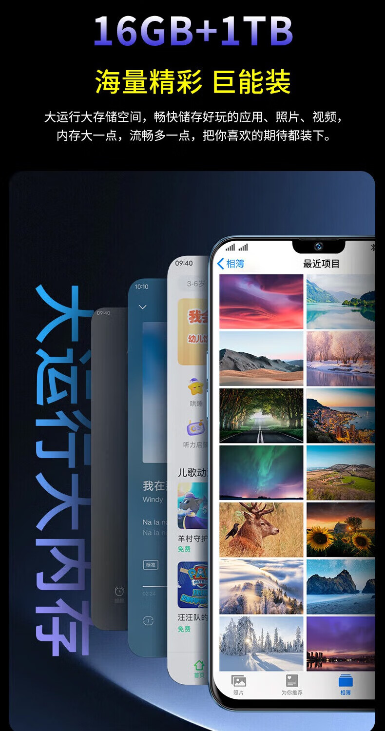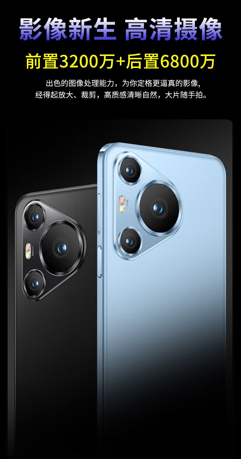 HUAMIKE 2025 new HUAMIKE mobile phone 16G operation + 1TB large memory new high-performance full Netcom 5G dual SIM 7800mAh fast charge long battery life anti-fall smartphone Feather Black 16GB + 128GB