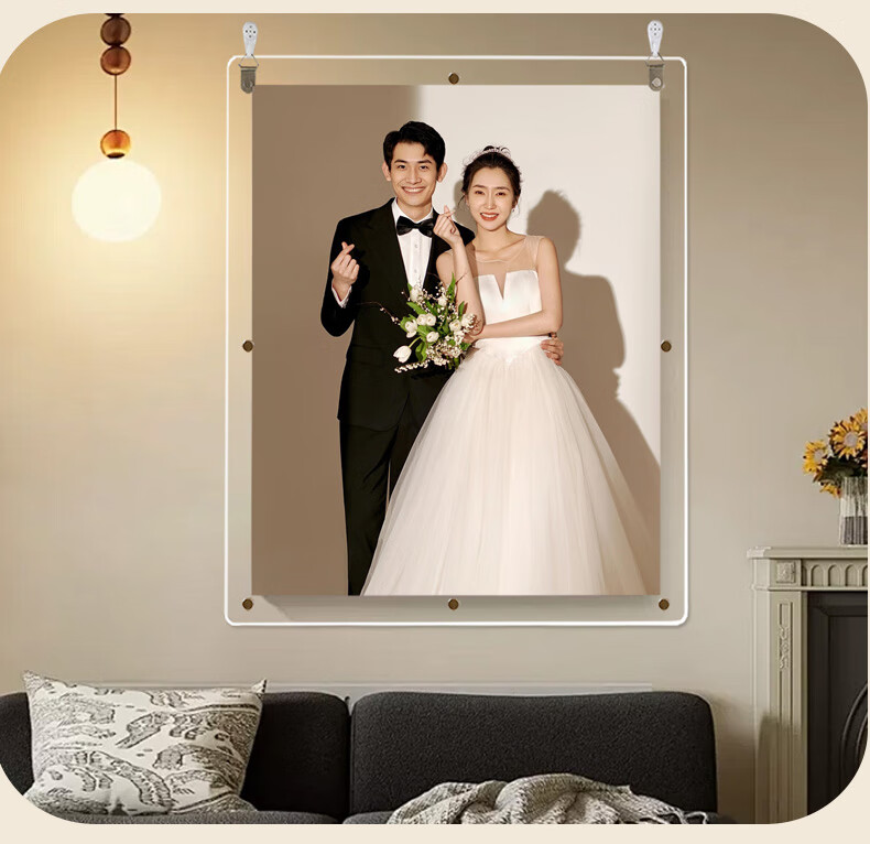 Hong Kong and Vietnam double-sided transparent acrylic wedding photo frame for hanging on the wall, photo development, printing and customization to make a family portrait table, double-sided transparent rounded corners, 6 inches, inner frame 10.2*15.2 cm for hanging