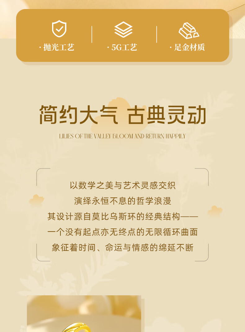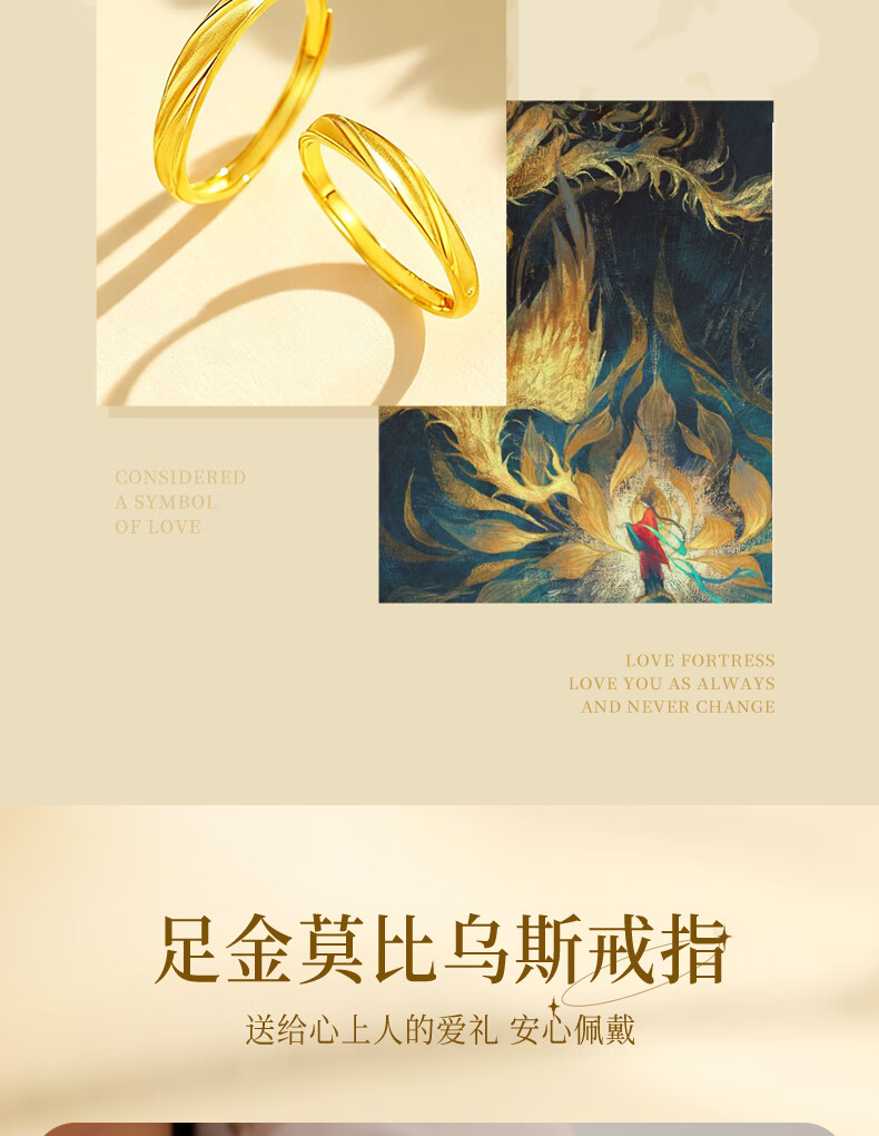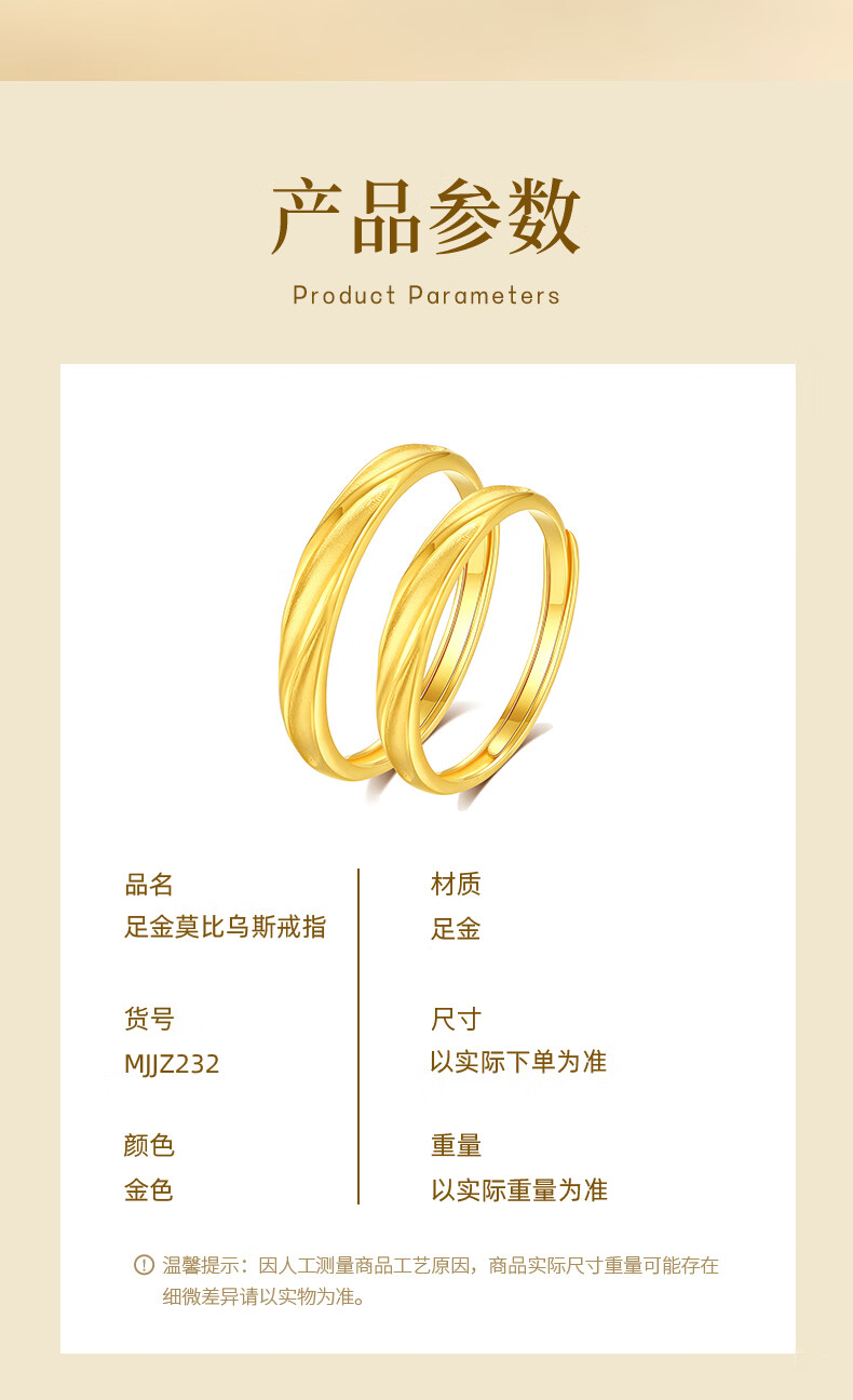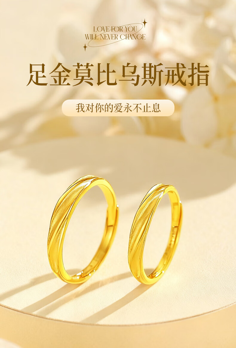 China Gold (CHINA GOLD) Möbius Gold Couple Rings Pure Gold Pair of Rings for Men and Women as Birthday Gifts for Boy and Girl. Gold Weight Approximately 2.1g Pure Gold Women's Rings