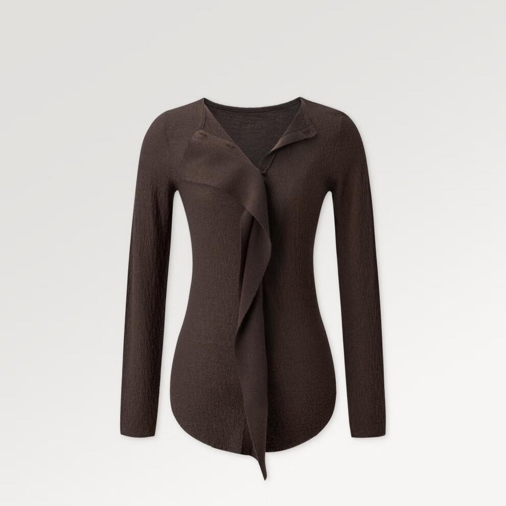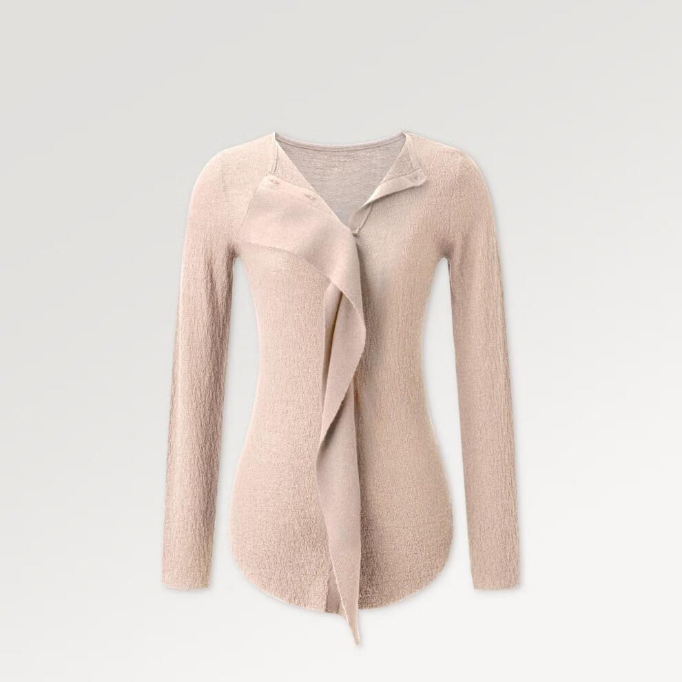 SIQIYOUNG Artist Series-Wool blended cardigan, asymmetrical design, slim, luxurious and slim, milk tea color S