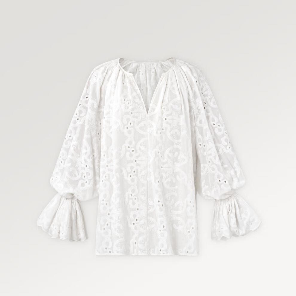 SIQIYOUNG Camellia - Hollow three-dimensional embroidery top, embroidered fabric super petal shirt, moonlight white M