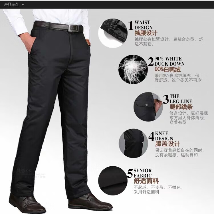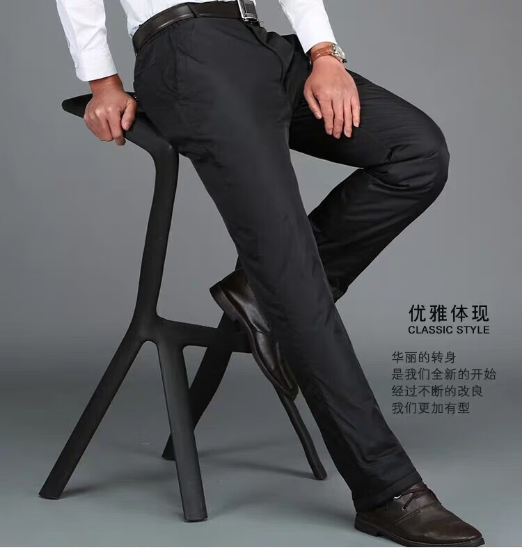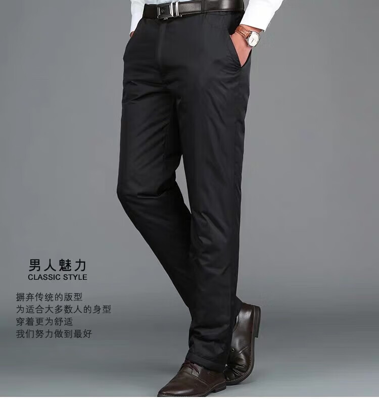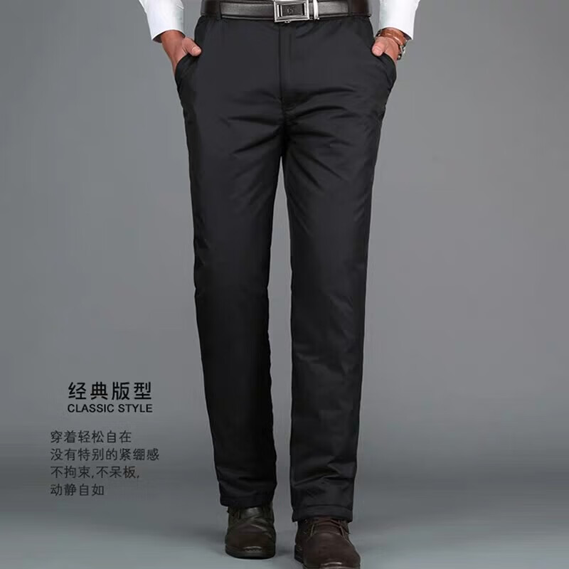 New Men's Mouthless Down Pants Men's Outerwear Thick Warmth Loose Winter Men's High-end Trendy Brand Black Elastic Waist (001 Style) L 175