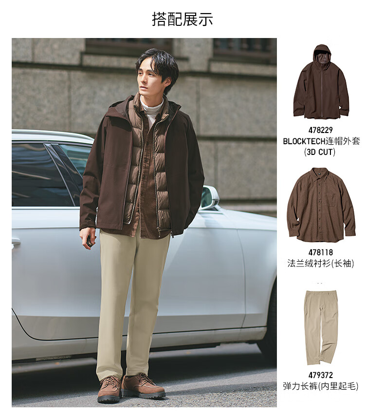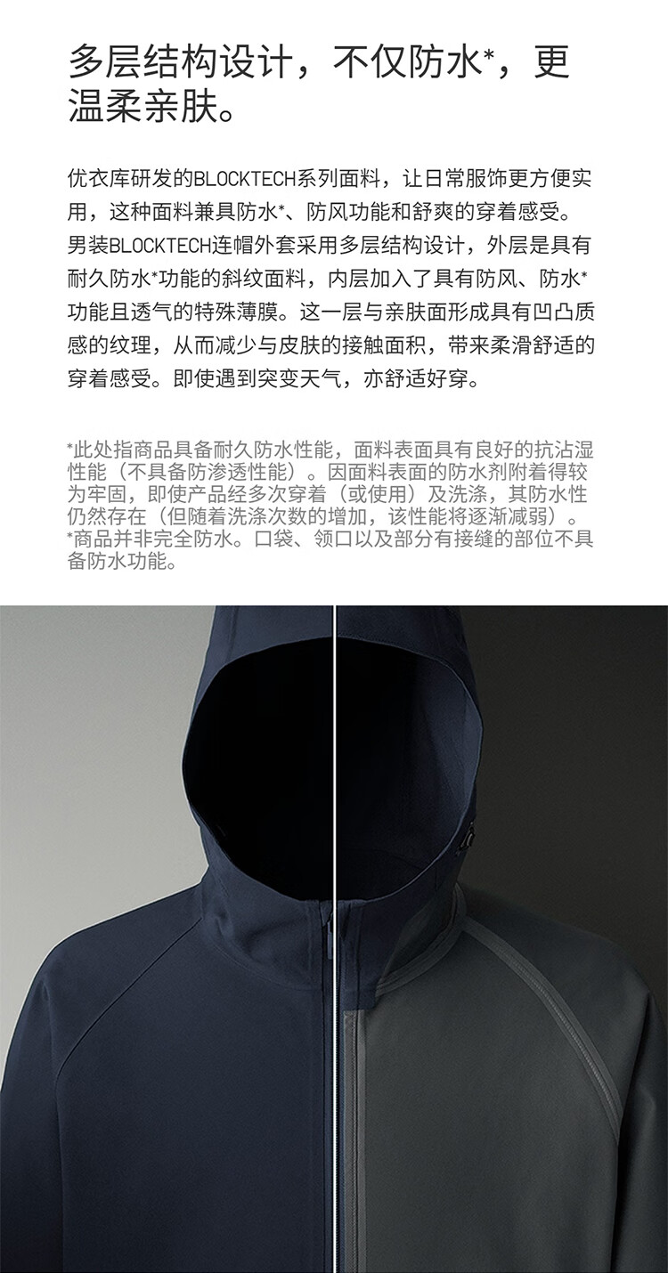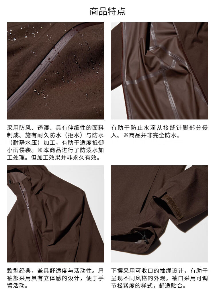 UNIQLO Men's BLOCKTECH Hooded Jacket 3D CUT Outdoor Functional Windproof and Breathable 478229 39 Brown Black XL