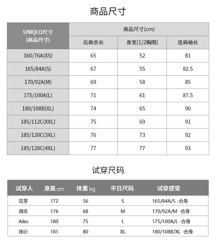 China (cm) 165 / 88-90 170 / 96-98 175 / 108-110 180 / 118-122 185 / 126-130