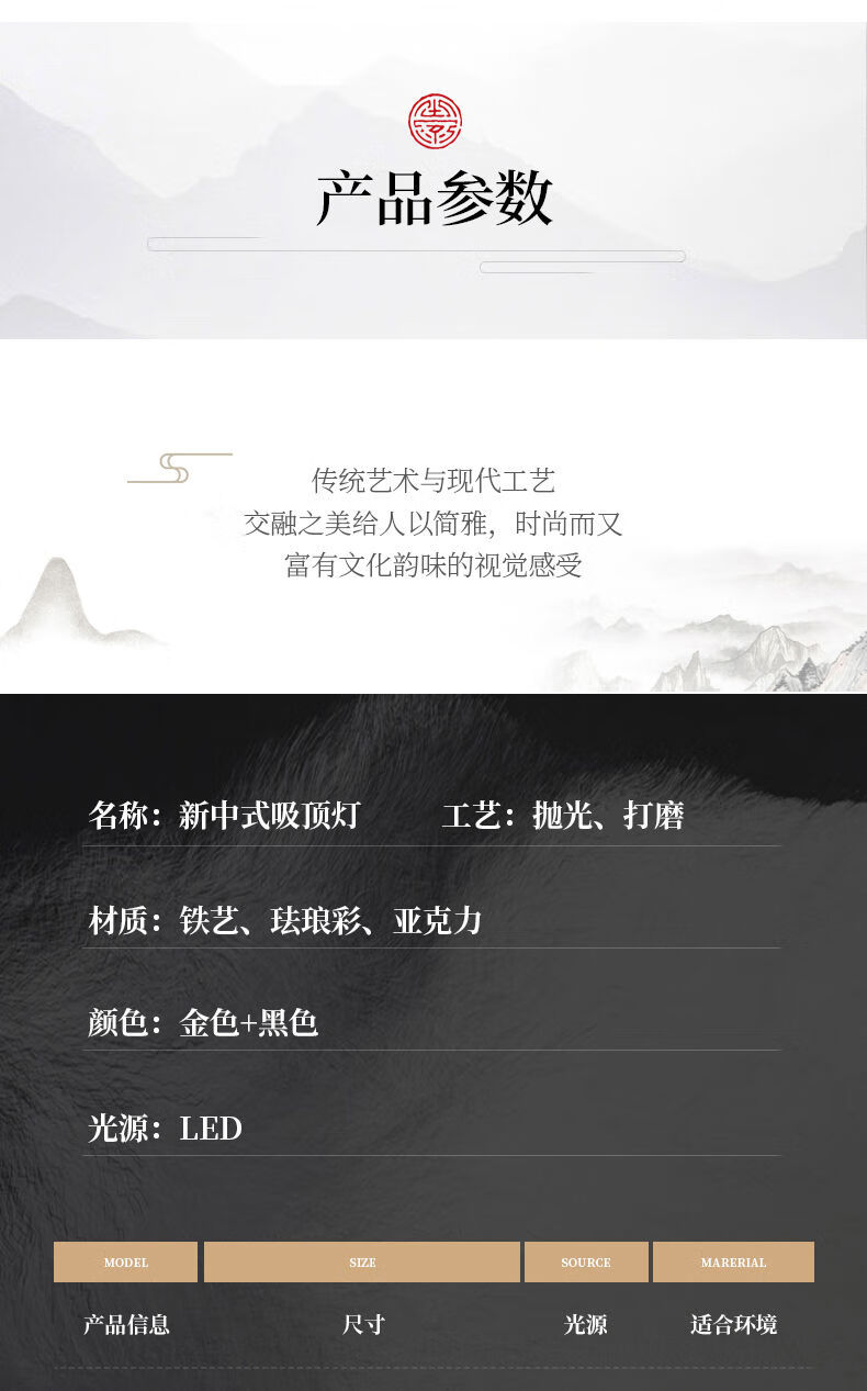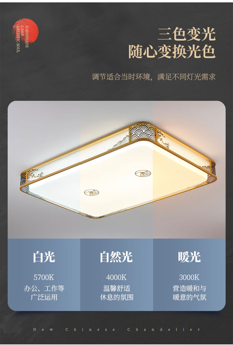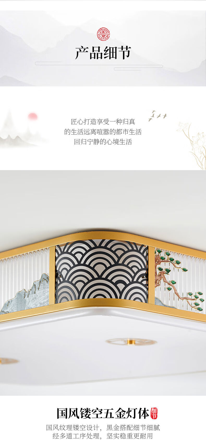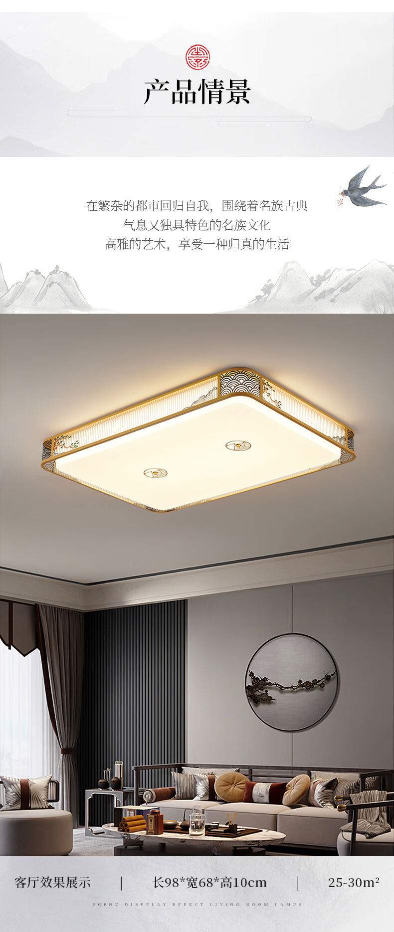 Yingtang New Chinese Style Lamps Modern Simple Bedroom Lamps Restaurant Study Room Whole House Lamps 2025 New Living Room Suction Package 03-Two Bedrooms and One Living Room
