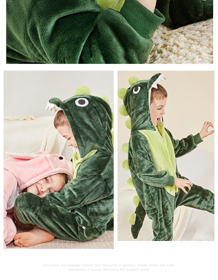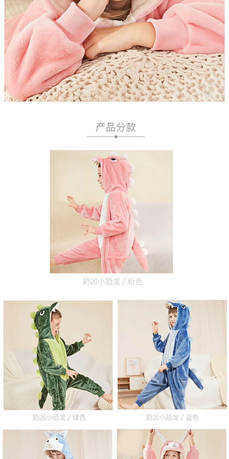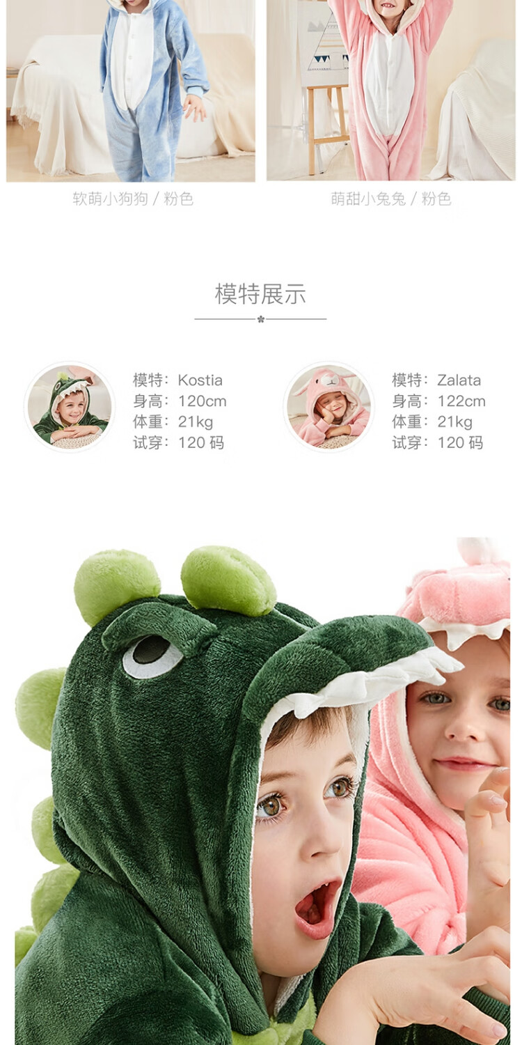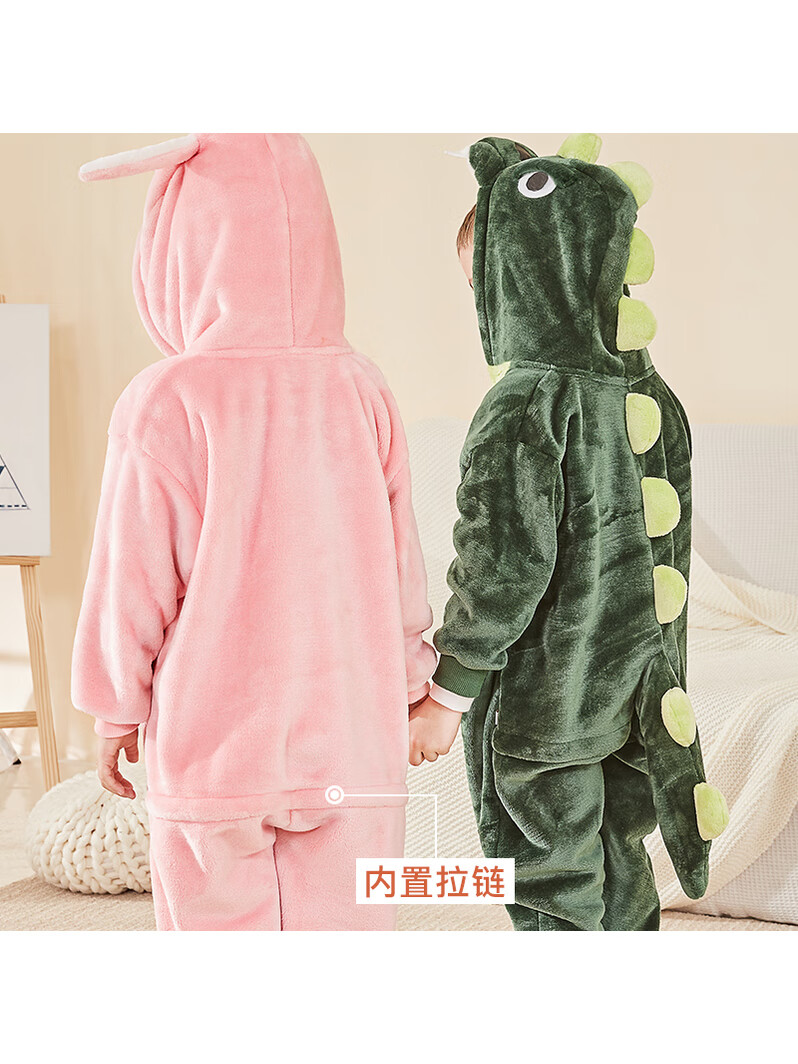 Domyowu dinosaur pajamas children's one-piece coral velvet boys and girls thickened baby cartoon animal one-piece home clothes pink 130 cm