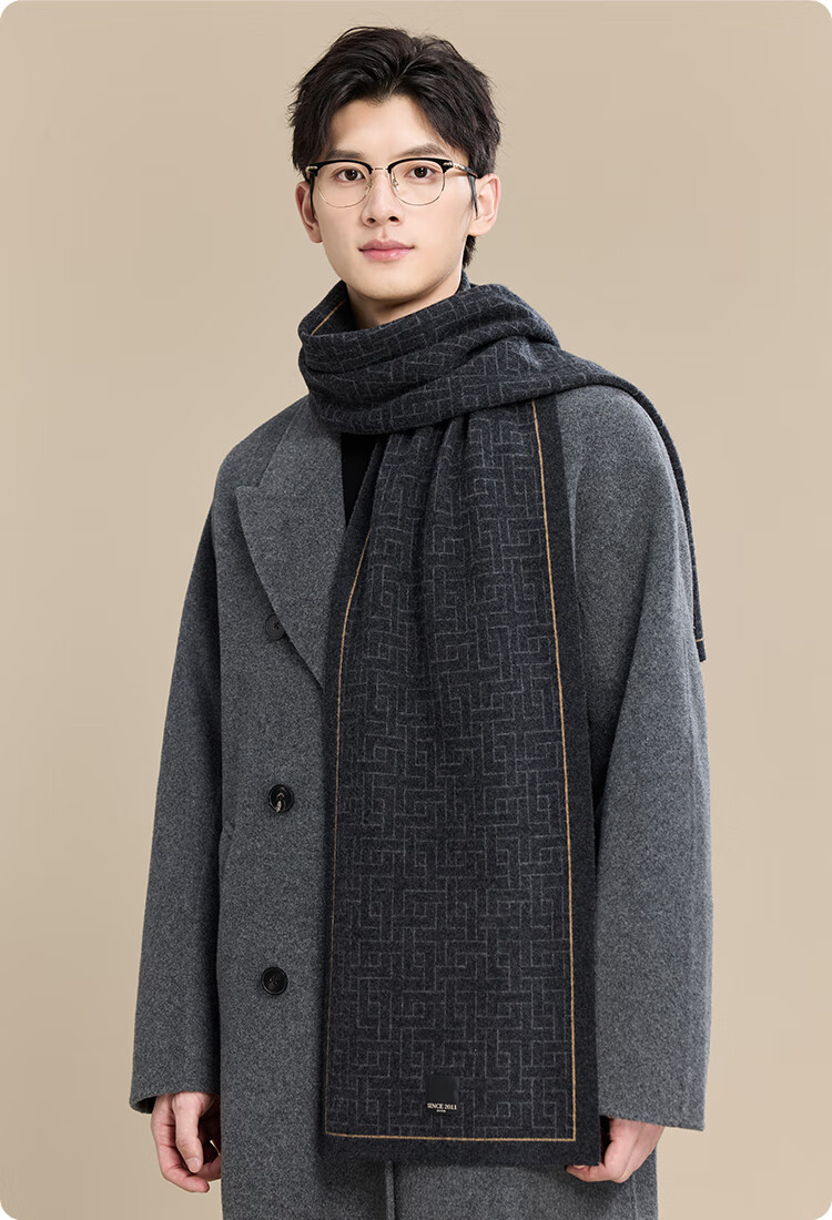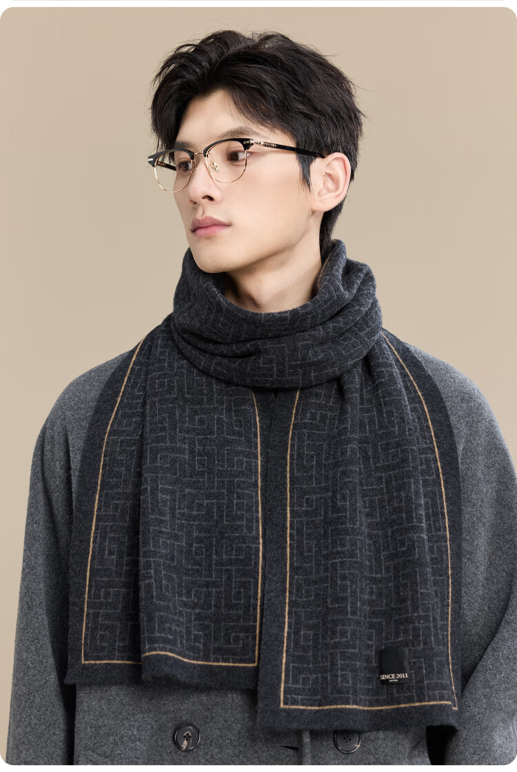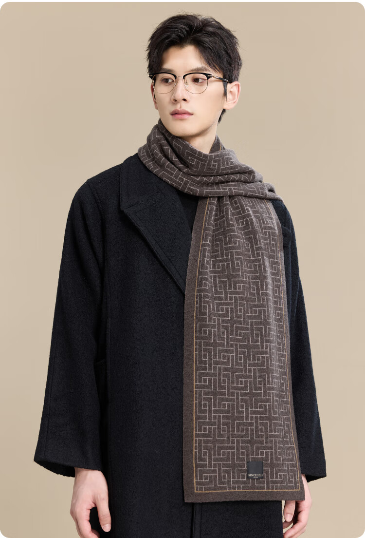 JIUMU men's scarf new autumn and winter versatile thickened warm scarf as a gift for boyfriend, coffee color