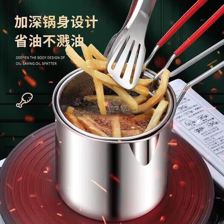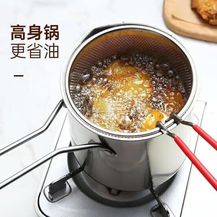 German double tail goods 304 stainless steel frying pan hot oil small pot pouring oil small pot deep-frying pot special frying pot