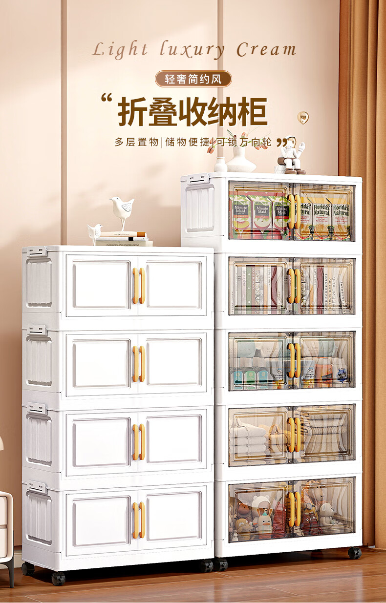 Nafenai Folding Storage Cabinet Thickened Living Room Snack Storage Cabinet Bedroom Bedside Storage Cabinet Clothing Organizing Box Baby Wardrobe 50 Sides Wide Internet Popular Gray Translucent 5-Layer Value Recommendation Hot-Selling