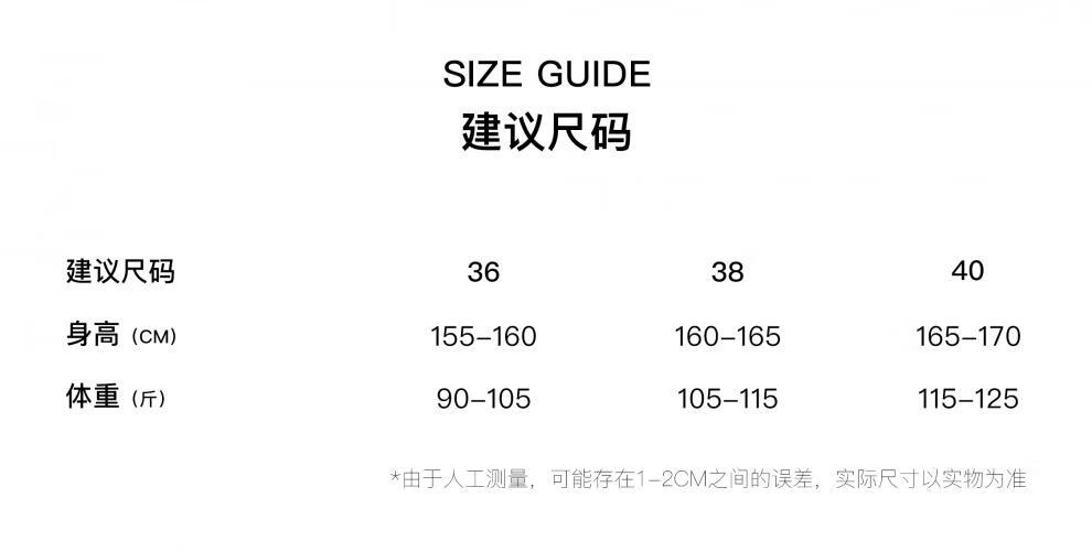 China (cm) 160-165/84-86 165-170 / 88-90 167-172 / 92-96 168-173 / 98-102 170-176 / 106-110