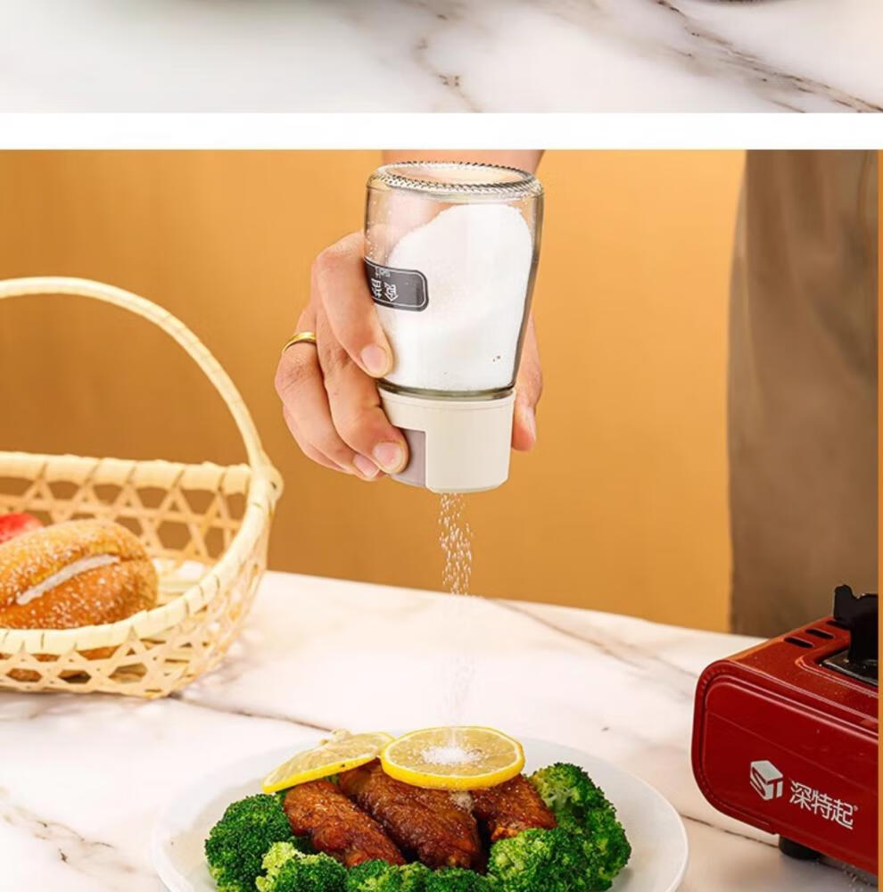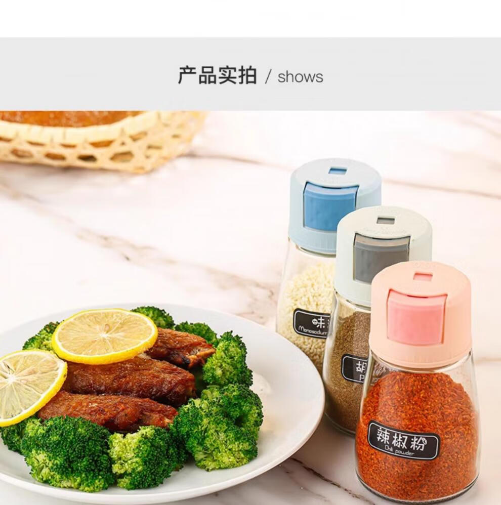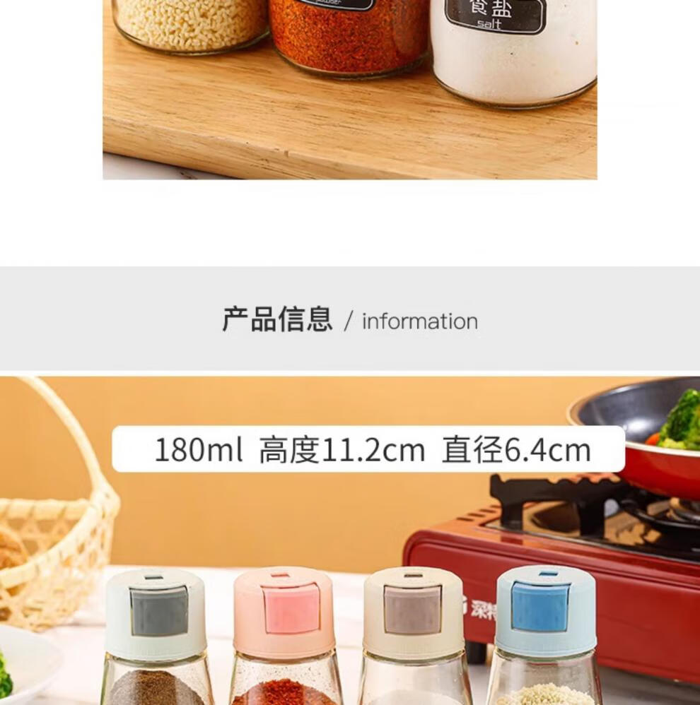 Fat Donglai's same style salt shaker quantitative seasoning box kitchen glass seasoning controlled salt bottle push type quantitative seasoning jar 1 pack blue