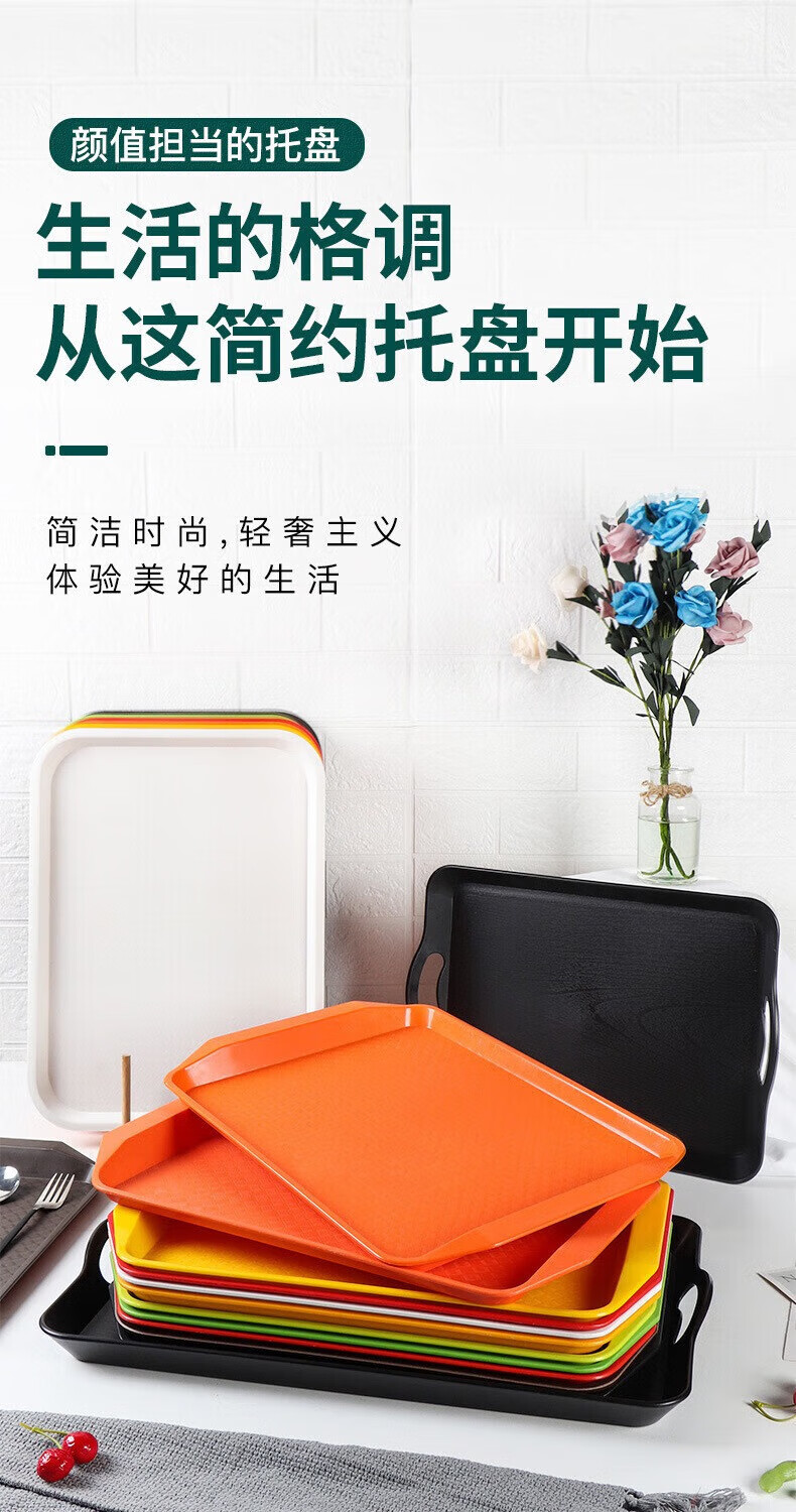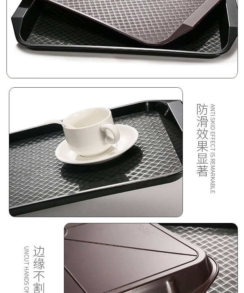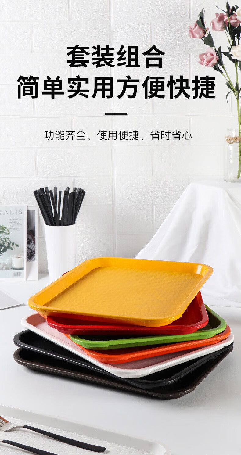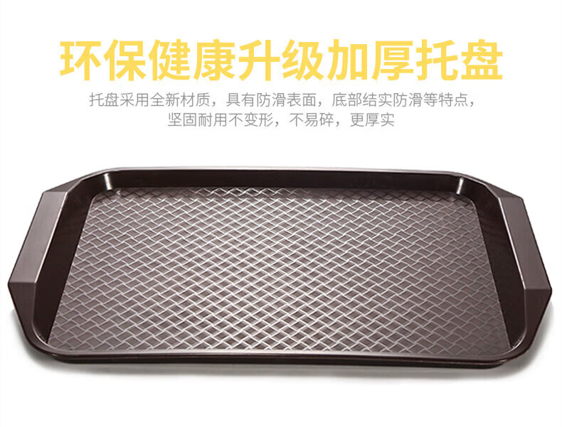 Jingxianju Tray Rectangular Serving Tray Dinner Plate Fast Food Plastic Serving Tray Serving Tray Anti-scalding Commercial Restaurant Brown Plaid 1 PC