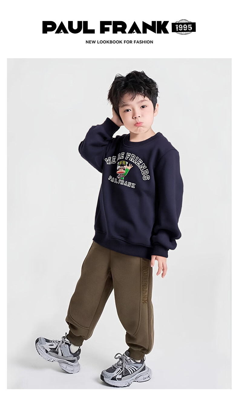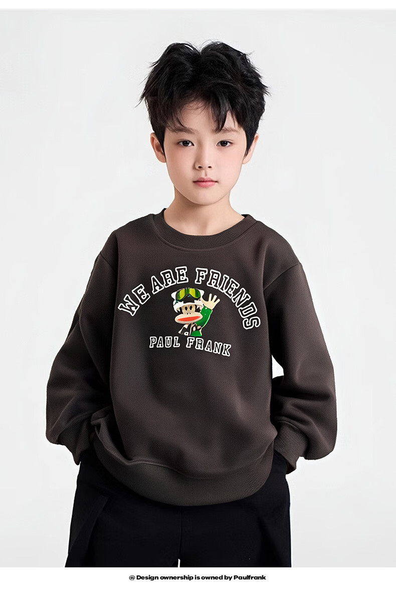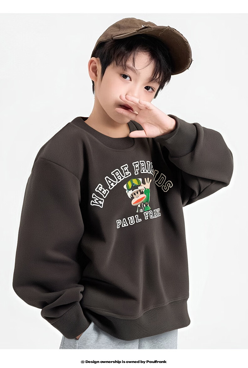 Paul Frank children's sweatshirt 2025 autumn and winter style for boys and girls, comfortable and warm multi-color medium and large children's trendy and versatile jacket 249F red 160