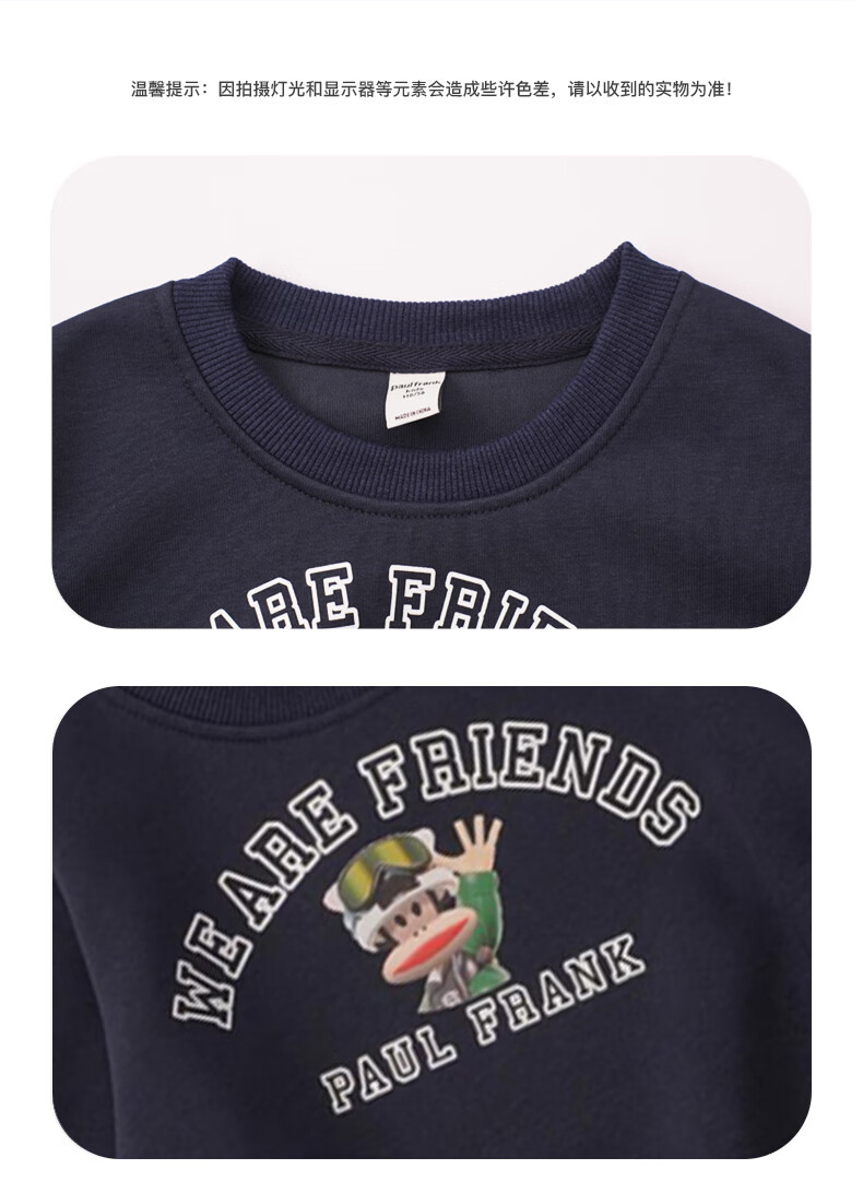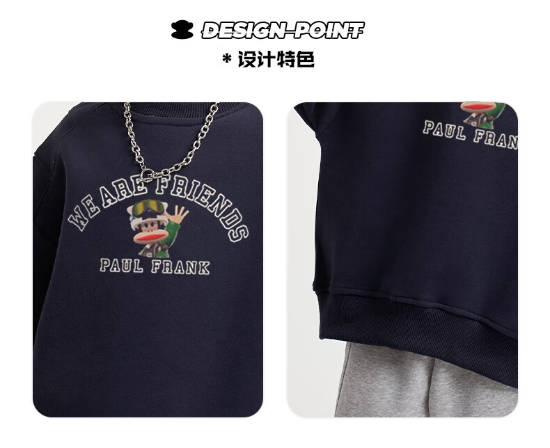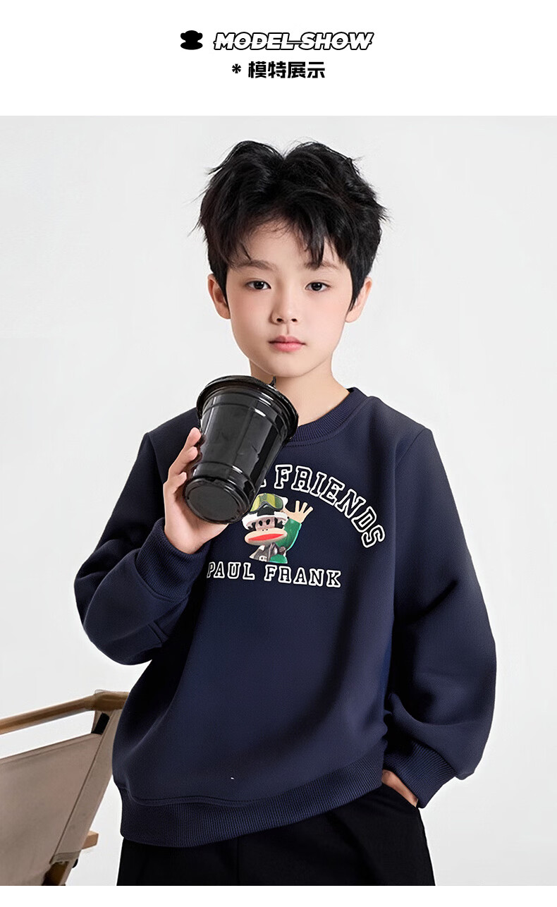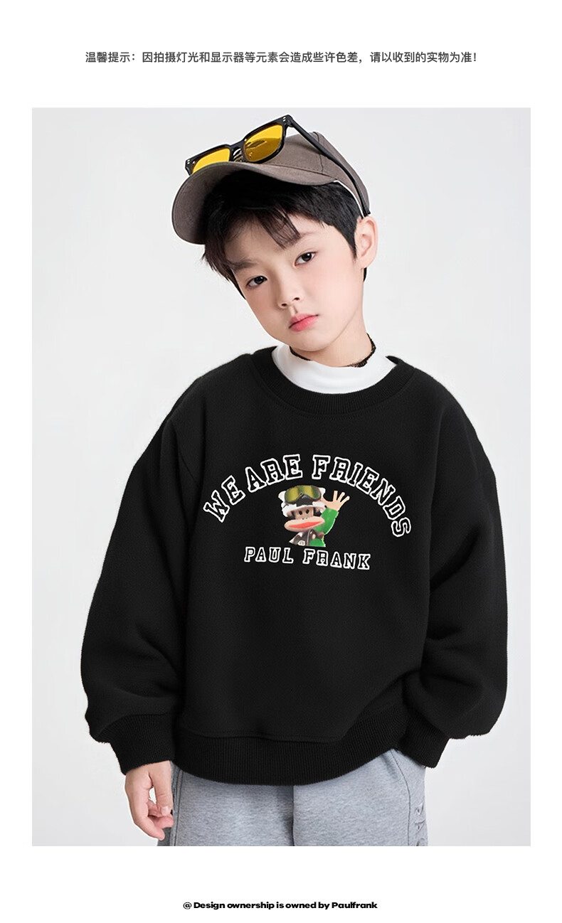 Paul Frank children's sweatshirt 2025 autumn and winter style for boys and girls, comfortable and warm multi-color medium and large children's trendy and versatile jacket 249F red 160
