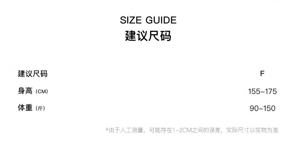 China (cm) 160-165/84-86 165-170 / 88-90 167-172 / 92-96 168-173 / 98-102 170-176 / 106-110