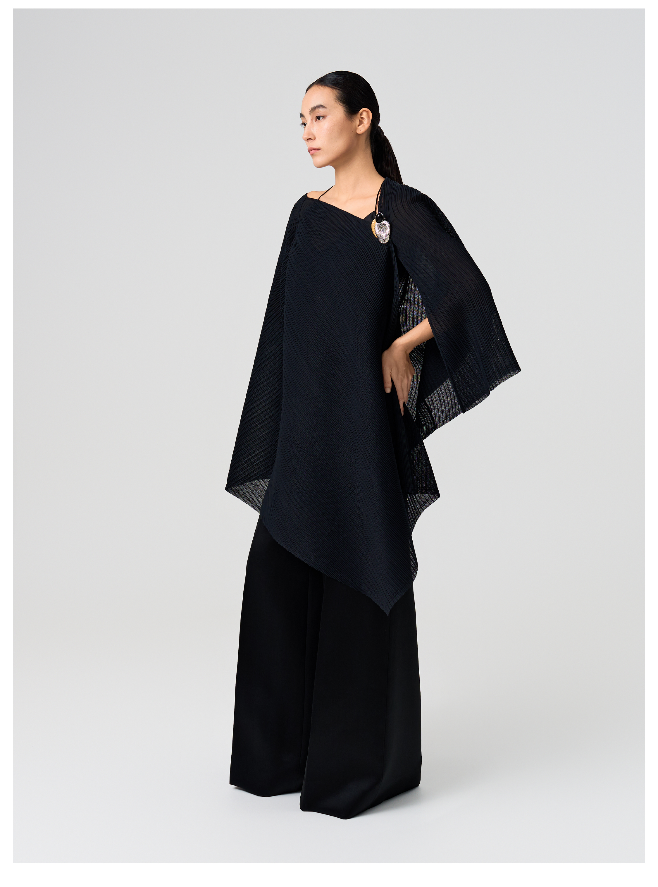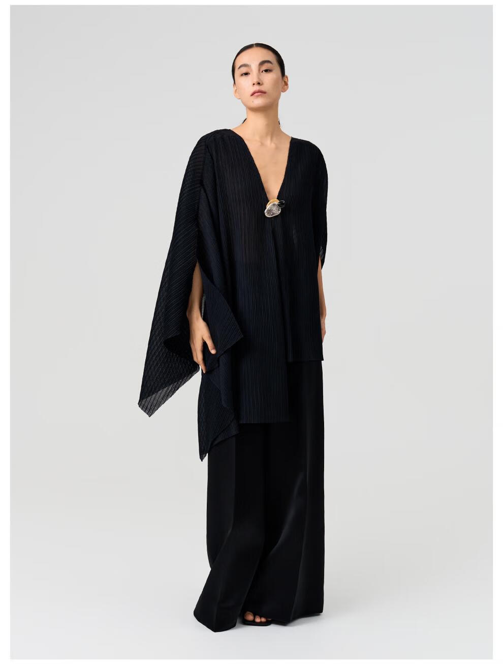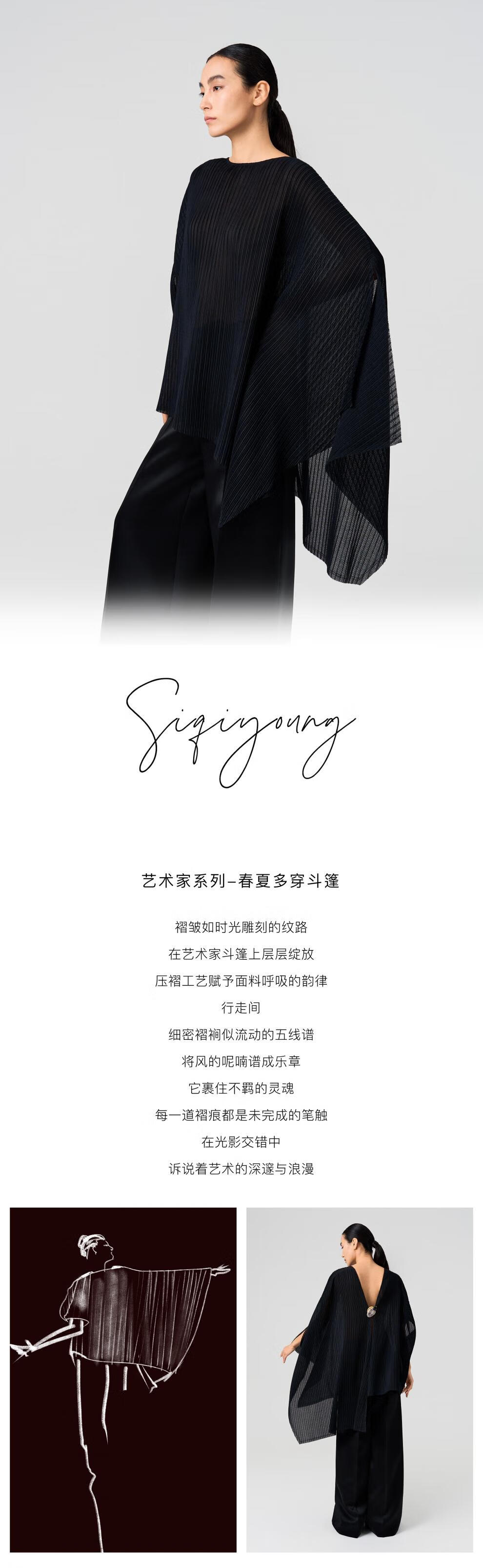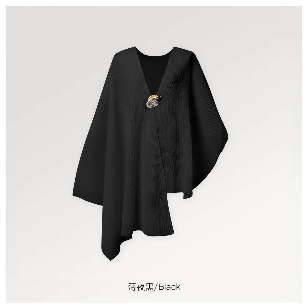 SIQIYOUNG Artist Series - Multi-Wear Cape Large Pleated Shawl Multi-Wear High-end Outerwear Mist Black One Size F