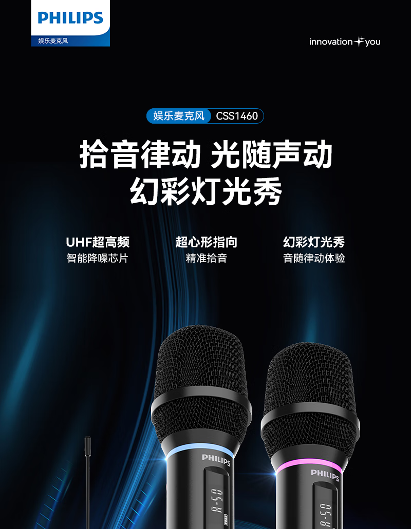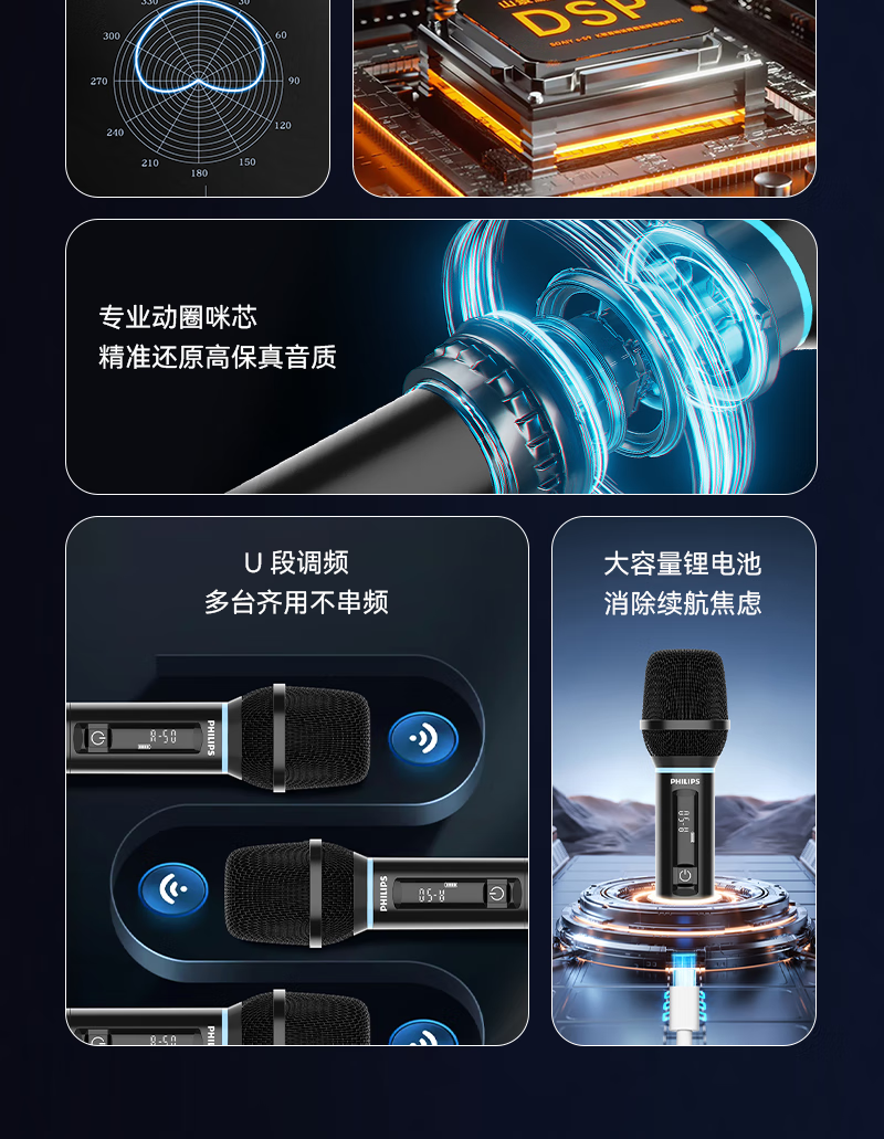 Philips CSS1460 portable wireless microphone handheld microphone outdoor audio karaoke sound card live broadcast home singing universal microphone home ktv conference speaker charging U segment bel canto karaoke microphone 2 pieces (for use with audio/sound card)