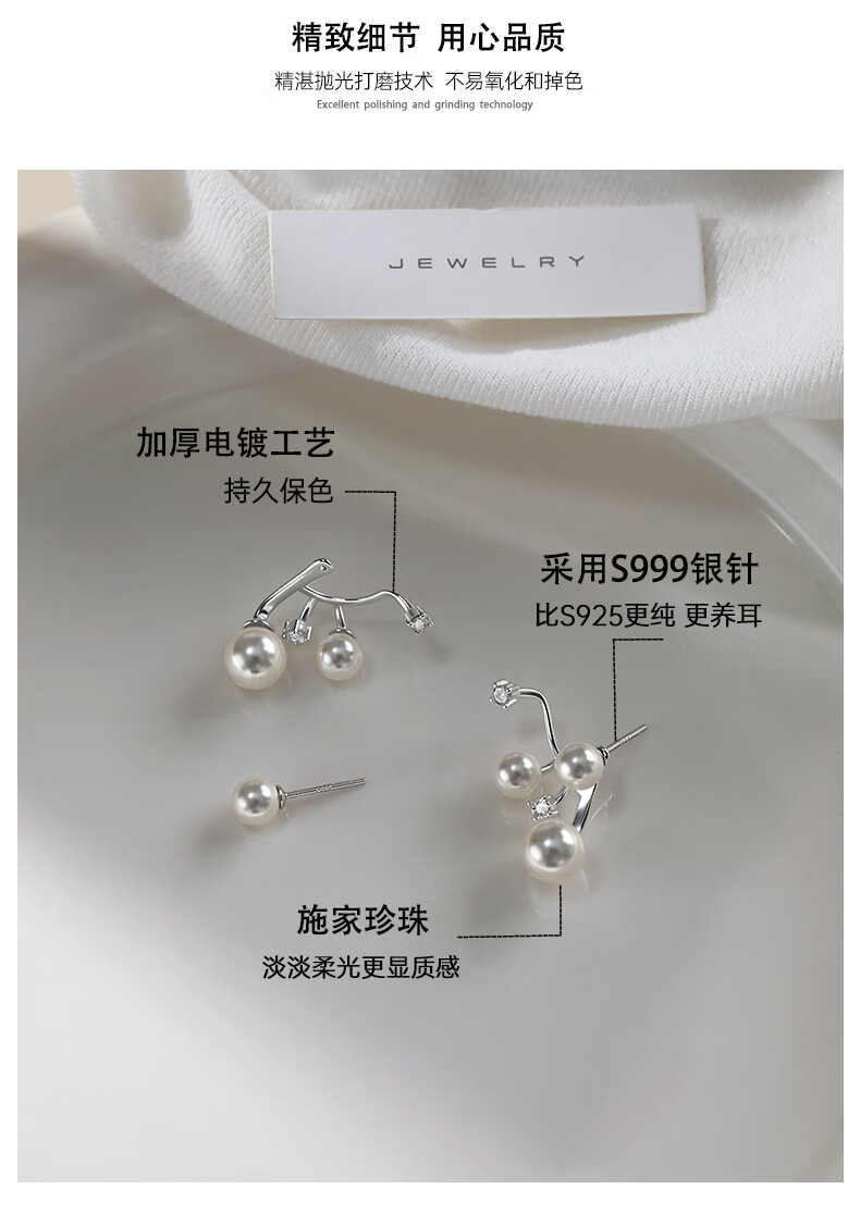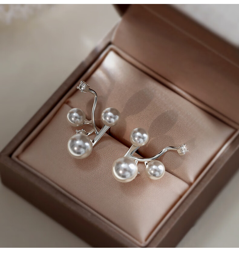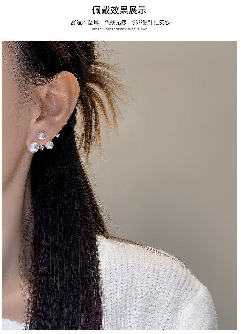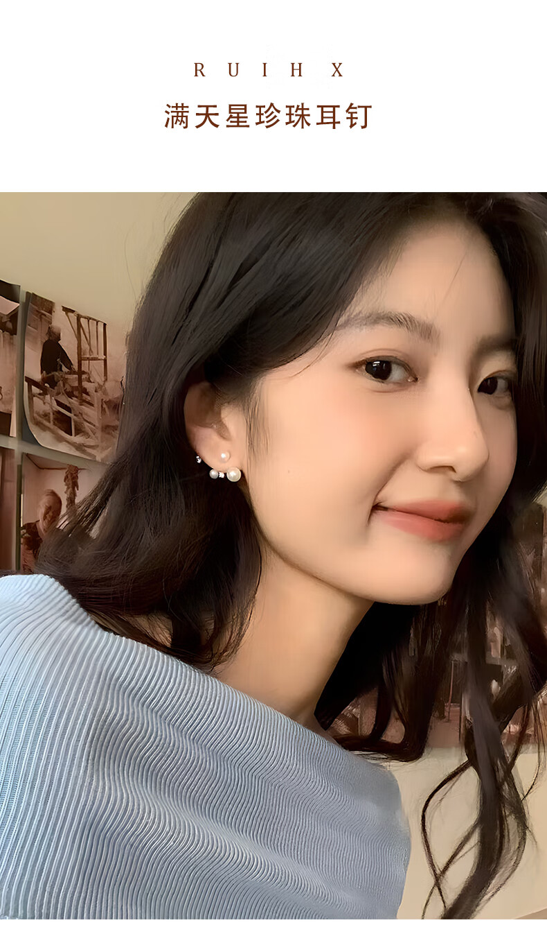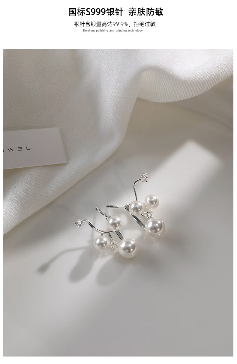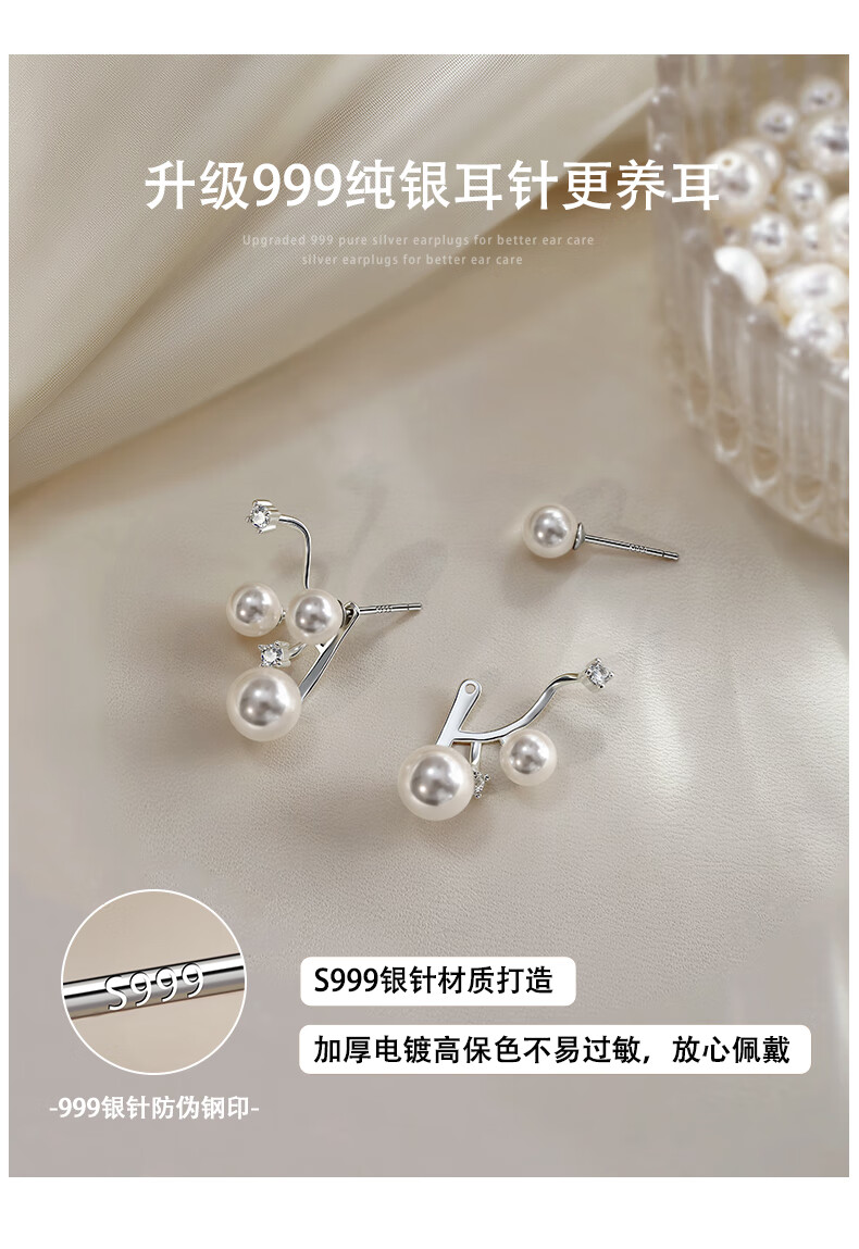 Ruihongxiang 999 sterling silver earrings, baby's breath pearl earrings for women, light luxury high-end earrings 2025 new popular earrings 999 sterling silver earrings, baby's breath pearl earrings