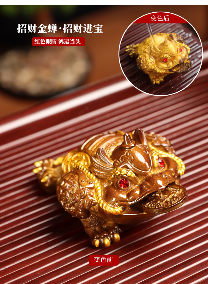 Jiaomingtang color-changing tea pet ornaments color-changing large golden toad Pixiu lychee tea toy boutique tea set tea table accessories masonry red toad (red)