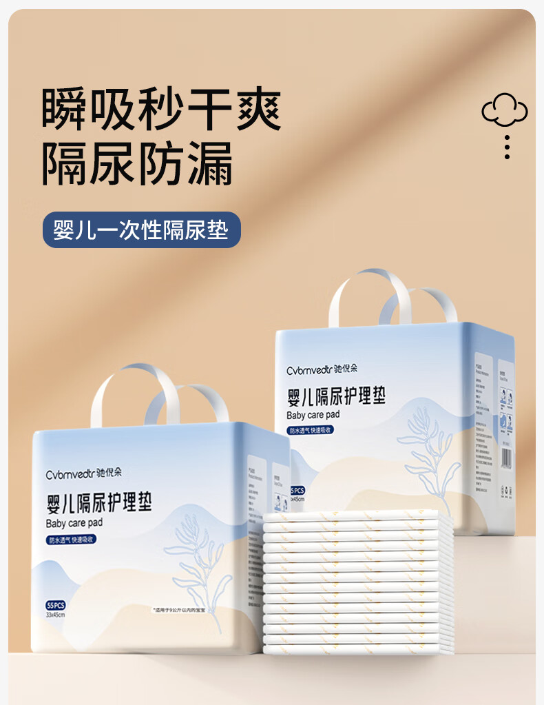 Jingkodi diaper pad baby disposable large size newborn baby care pad waterproof non-washable children's diaper pad small size 80 pieces 25X33CM suitable for 0-1 month newborns