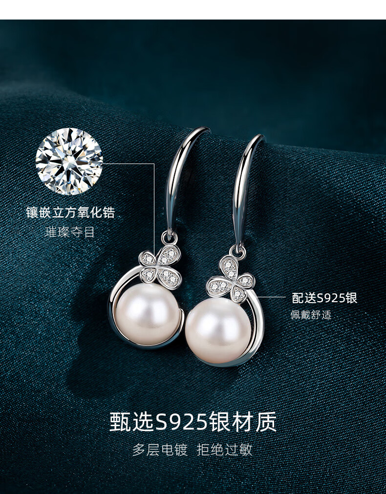 Lao Fengxiang S925 sterling silver pearl earrings for women 2025 new style earrings with high-end temperament, birthday gifts for girls, Butterfly Pearl Earrings, Brand Gift Box
