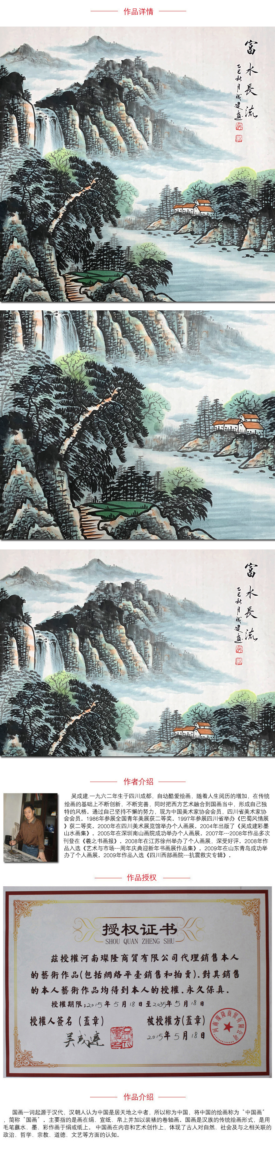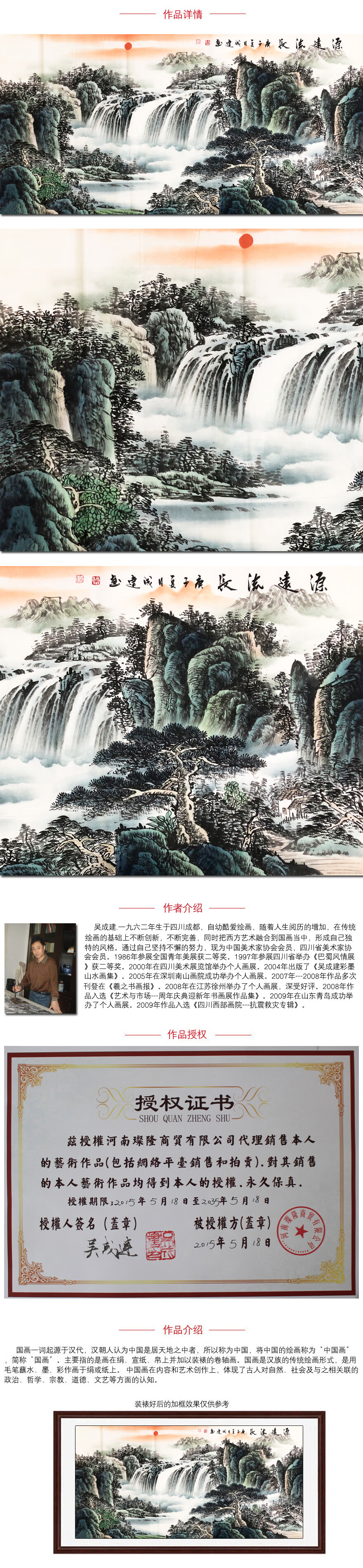 Chinese Artists Association of Celebrity Calligraphy and Painting Wu Chengjian <Rich Waters and Long Flows> Hand-painted Landscape Paintings Chinese Paintings Ink Paintings Oil Paintings Prints and Calligraphy Flowing Waters Make Wealth <Rich Waters and Long Flows> Office Decoration Painting Entrance Oil Paintings and Prints Artwork 68X68CM