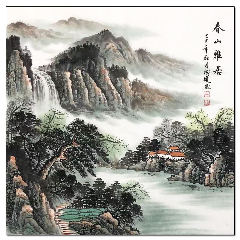 Chinese Artists Association of Celebrity Calligraphy and Painting Wu Chengjian Hand-painted Landscape Paintings Chinese Paintings Ink Paintings Oil Paintings Prints and Calligraphy Flowing Waters Make Wealth Office Decoration Painting Entrance Oil Paintings and Prints Artwork 68X68CM