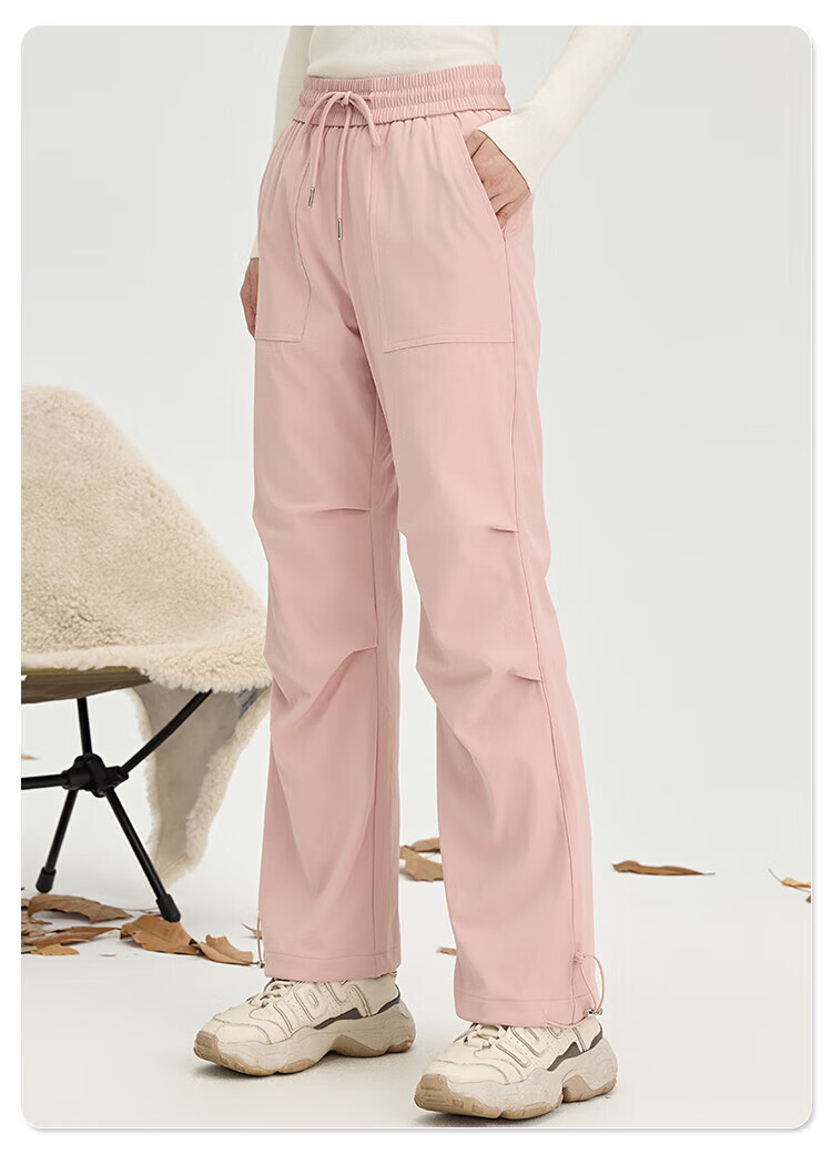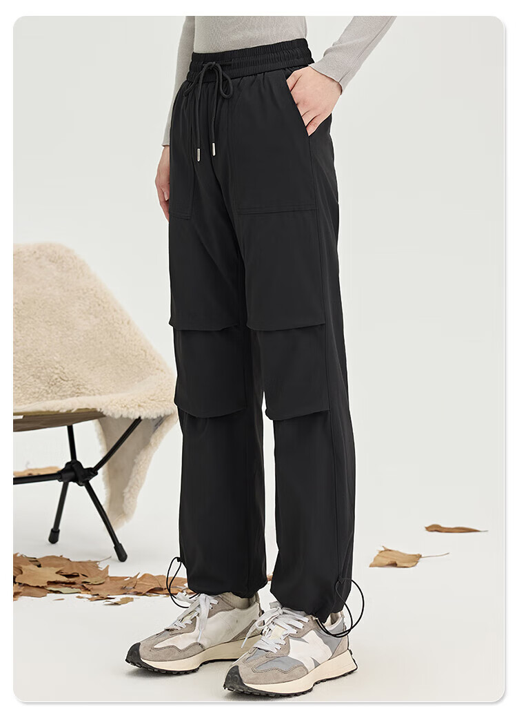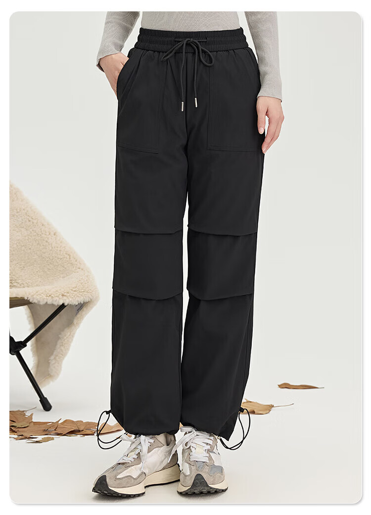Snow Flying Down Pants Spring Elastic Waist Women's Pants Warm Plush Pants Solid Color Fashion Versatile Coldproof Warm Straight Pants Black L (170)