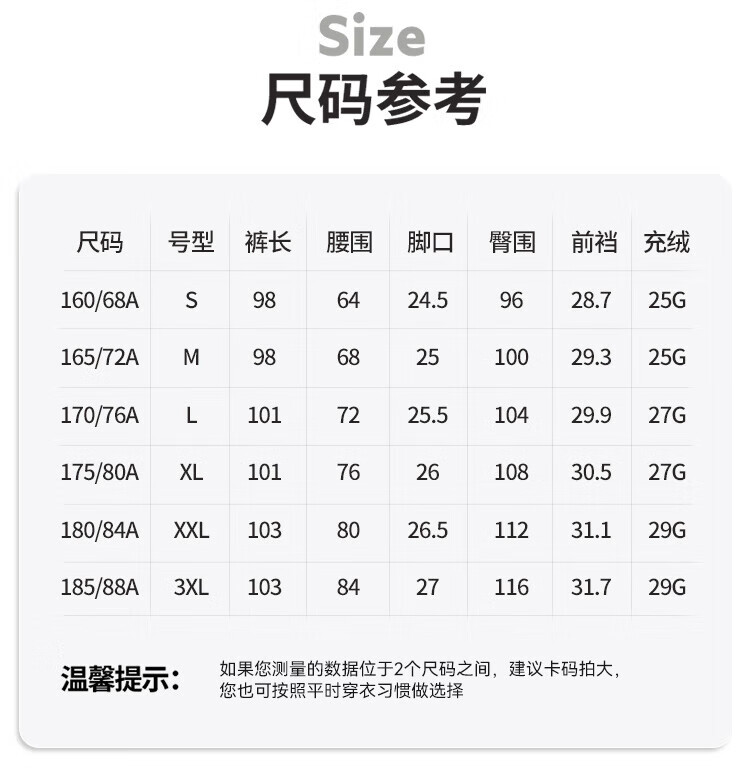 China (cm) 160-165/84-86 165-170 / 88-90 167-172 / 92-96 168-173 / 98-102 170-176 / 106-110