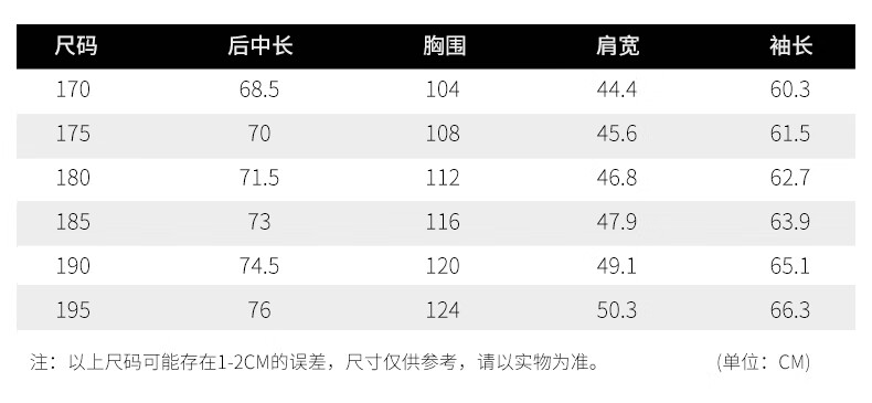 China (cm) 160-165/84-86 165-170 / 88-90 167-172 / 92-96 168-173 / 98-102 170-176 / 106-110