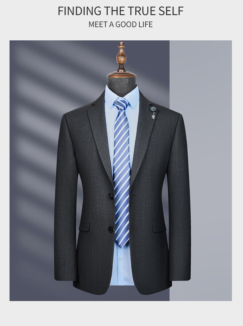Suit suit men's business casual formal solid color suit groom wedding dress slim suit gray 56 (195)