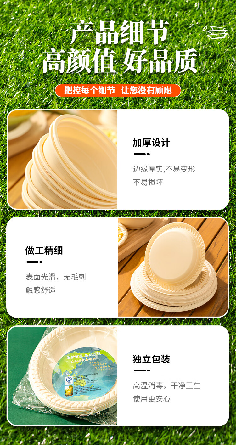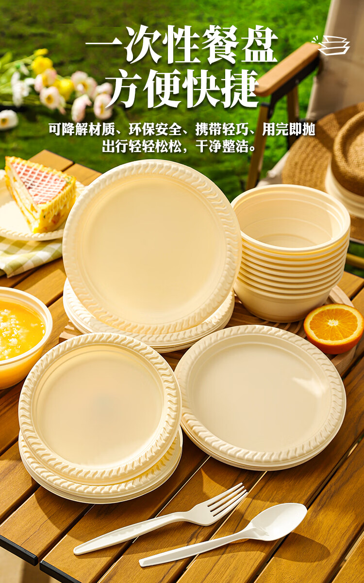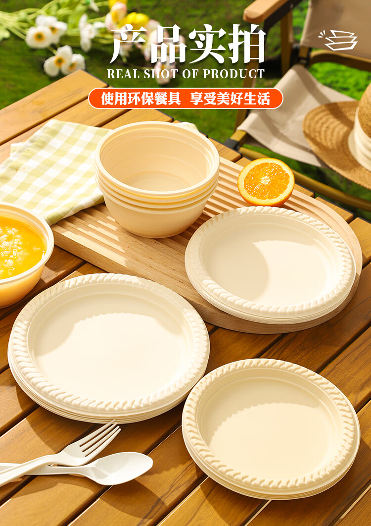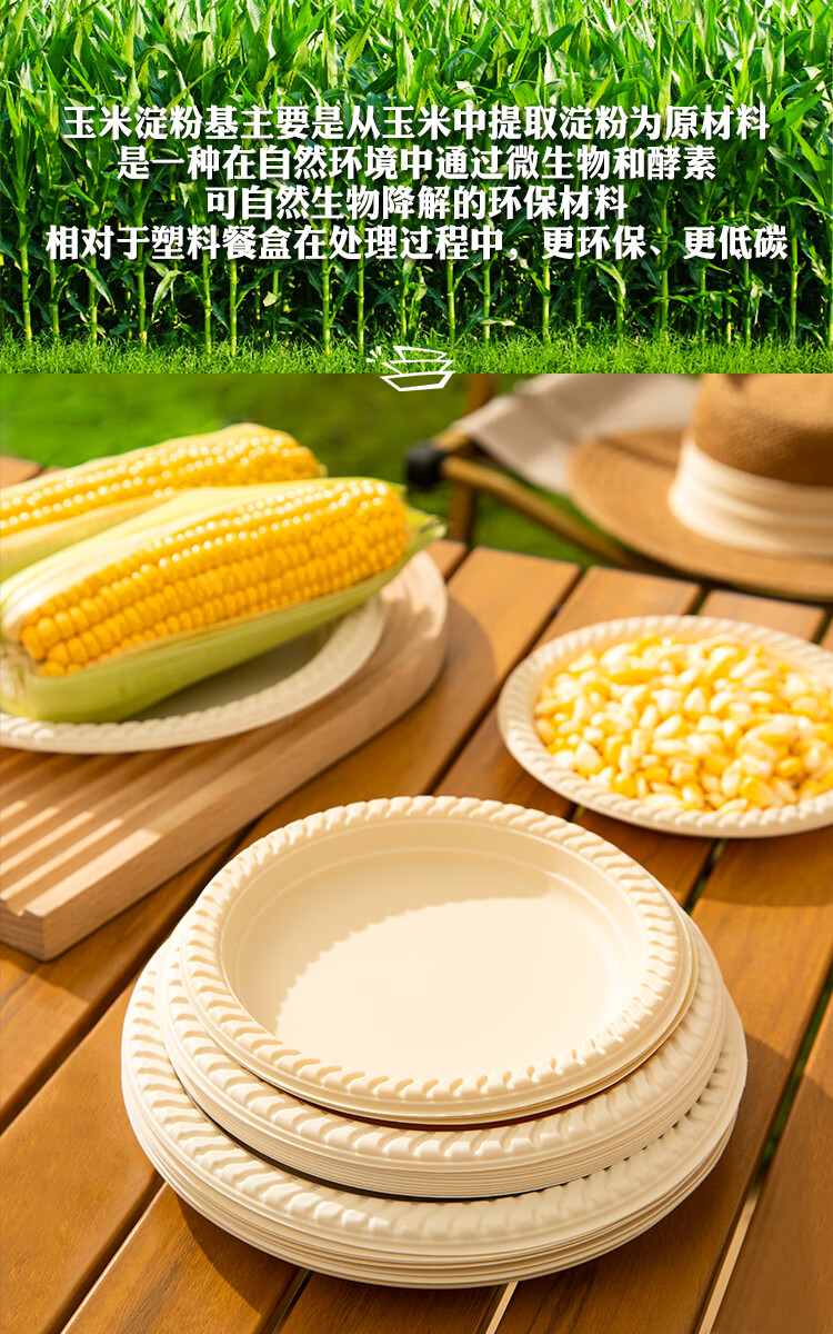Lushang Disposable Dinner Plate Corn Starch Tray 8-inch Round Plate Eco-friendly and Biodegradable Dinner Party Camping Cake Plate 8-inch Corn Starch Dinner Plate (50 pieces)