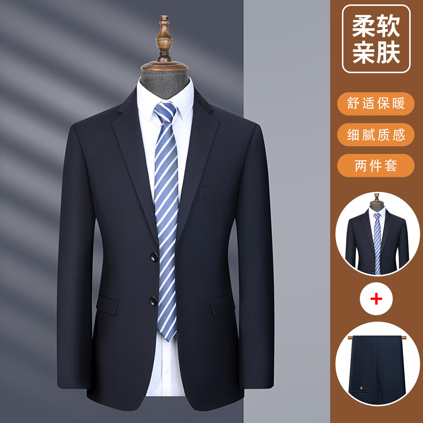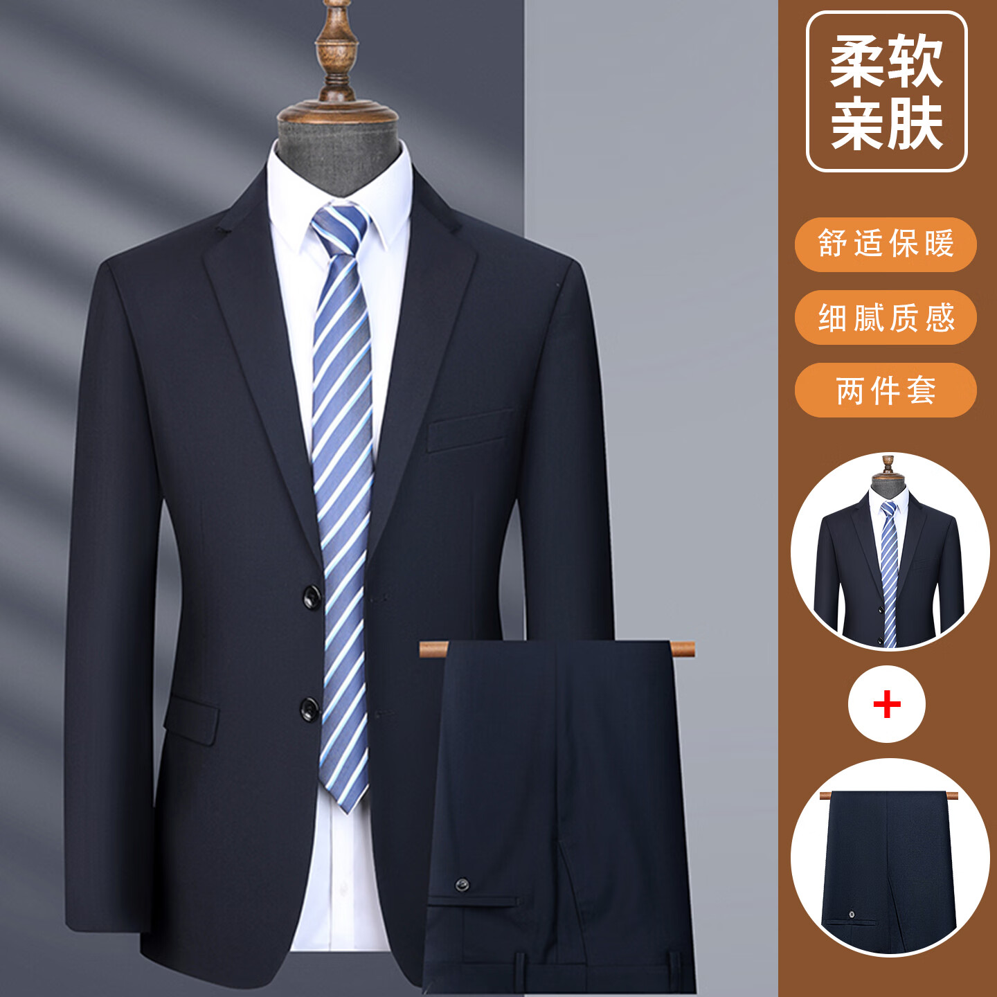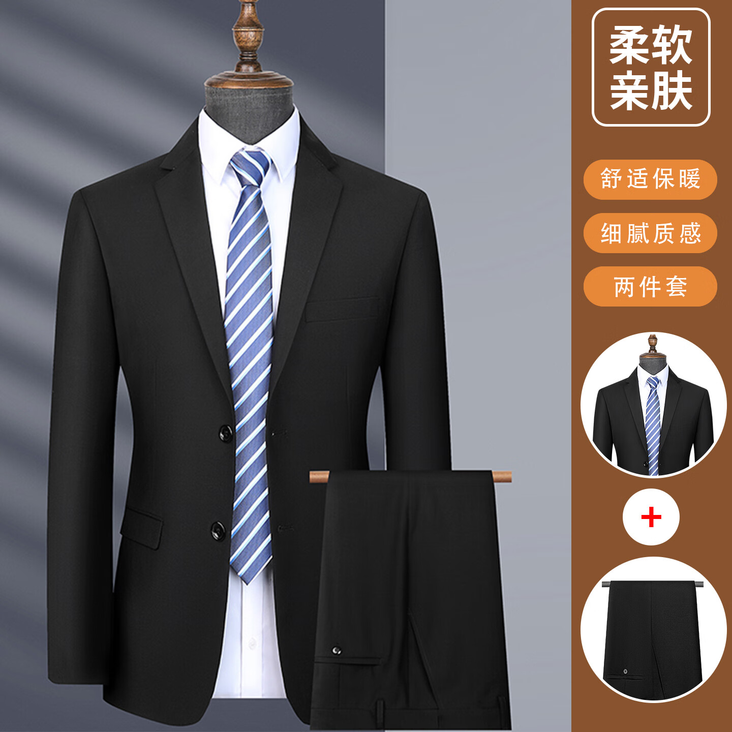 Suit Suit Men's Business Formal Wear Professional Work Wear Suit Male Groomsman Groom Wedding Dress Black 56 (195)