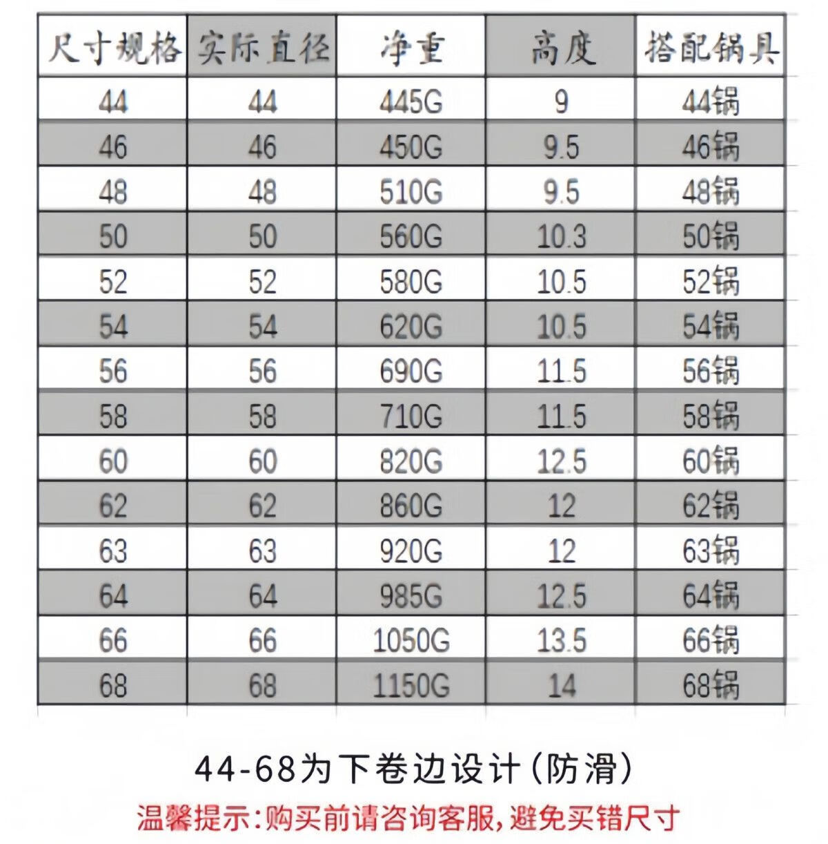 Size (cm) 42 44 46 48 50