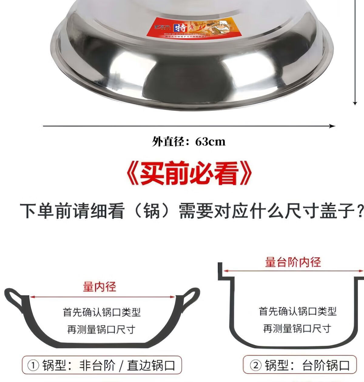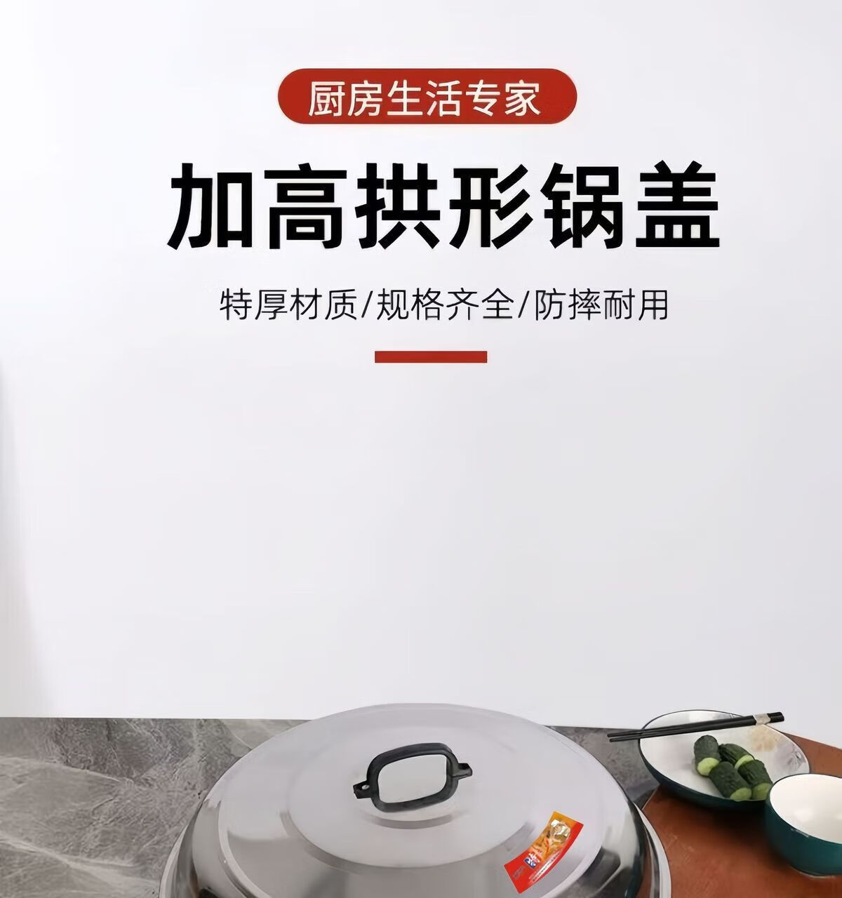 FANCYCHIC household stainless steel large pot lid wok high lid thickening pot lid stainless steel pot lid soup pot lid 90cm heightened drum lid with 2 handles