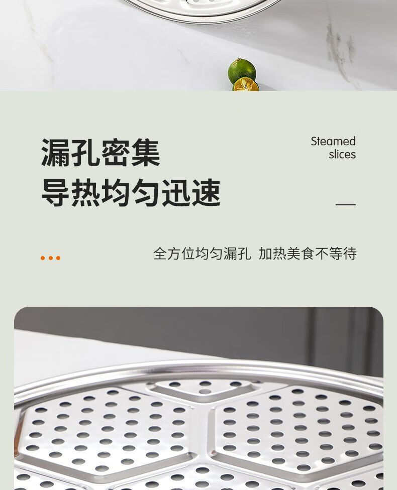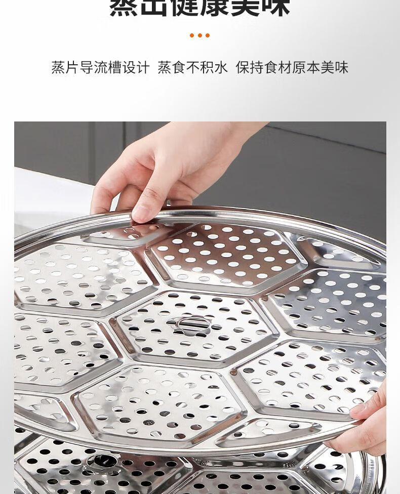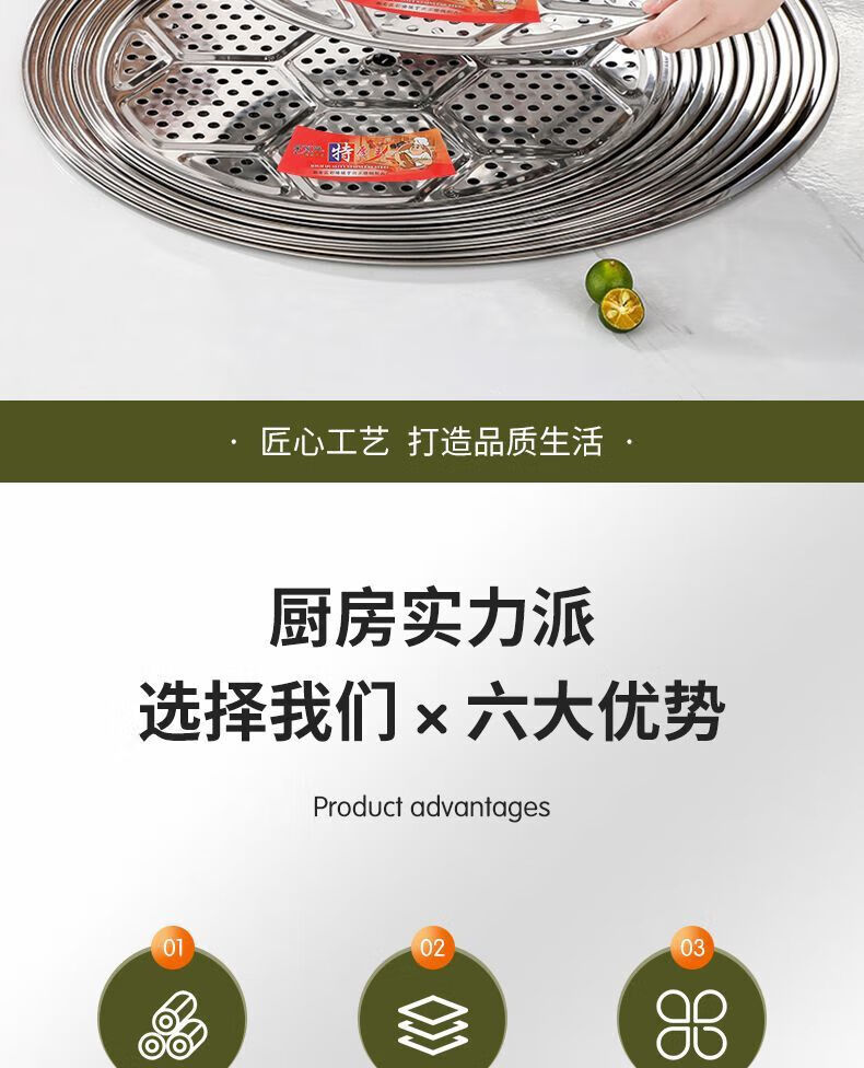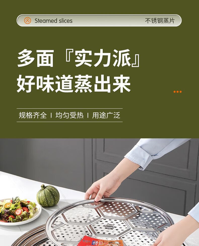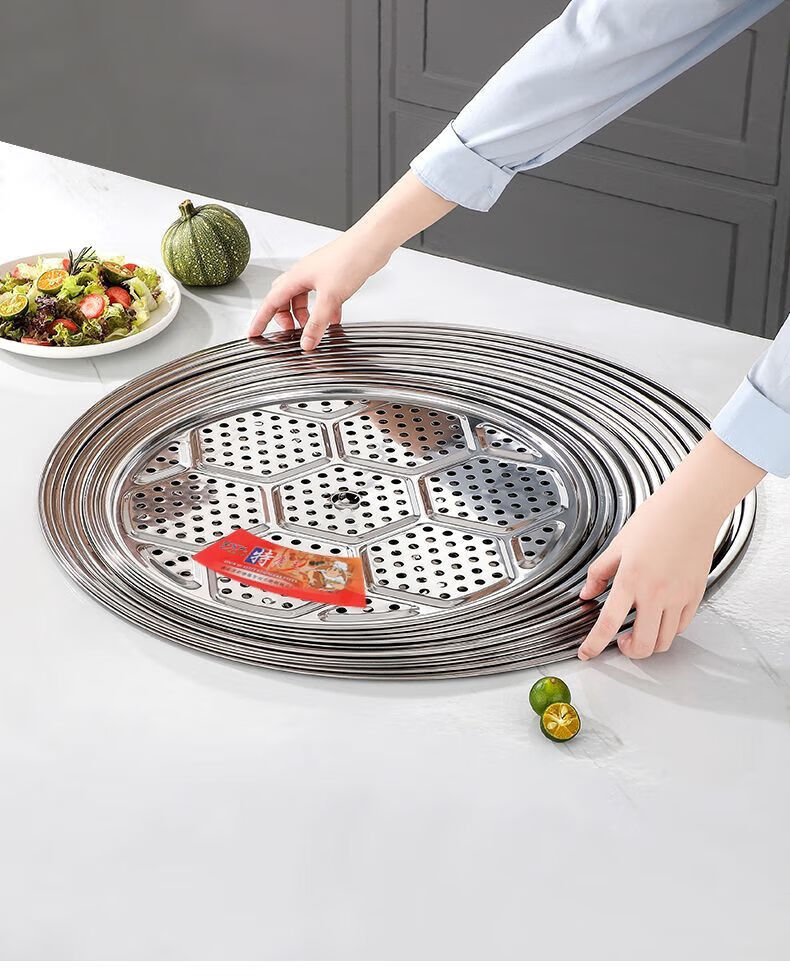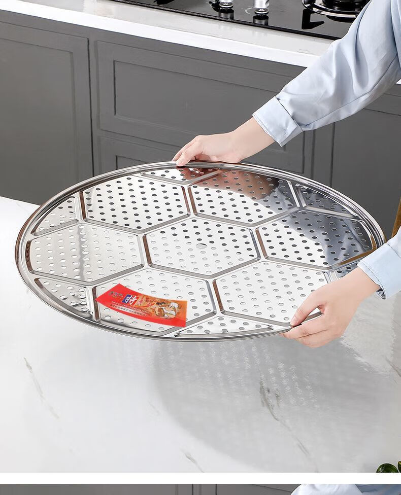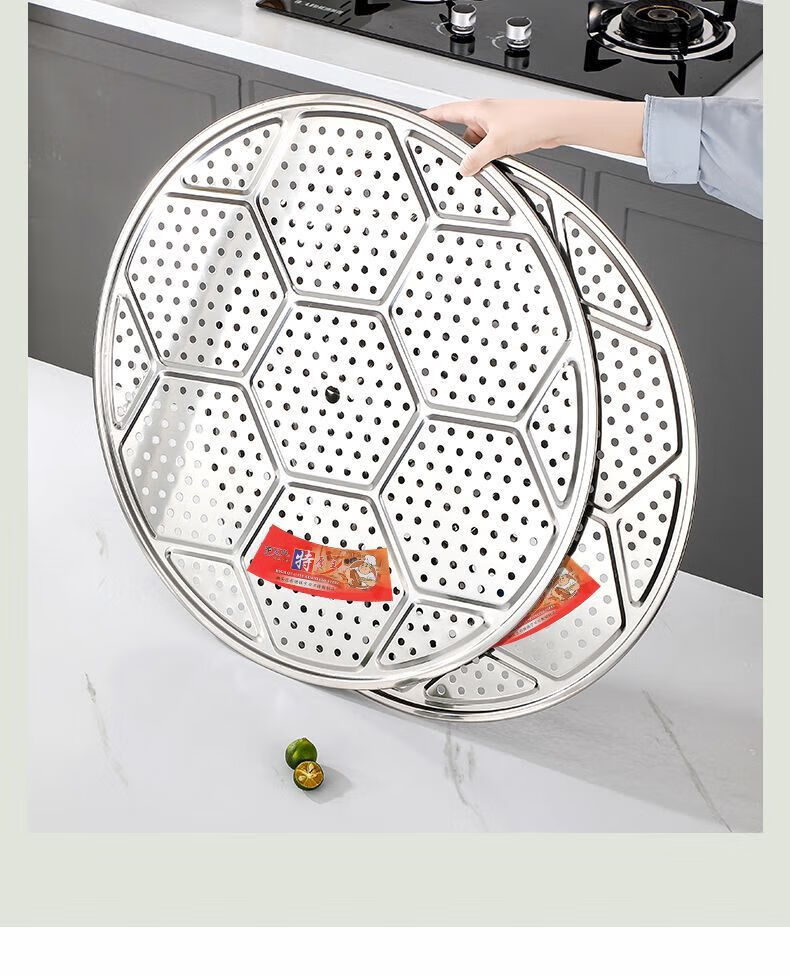 Qinkat large size stainless steel steaming sheet extra large grate household steamed buns steaming plate steaming grid steaming rack compartment steaming sheet with steaming cloth grate thickened 20cm