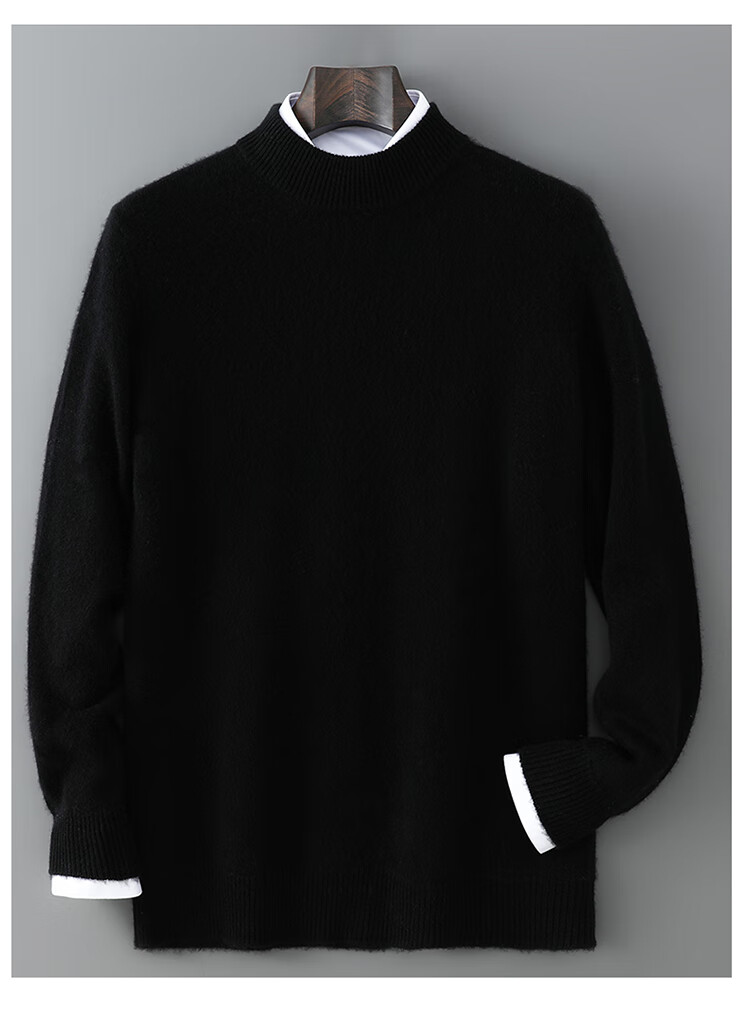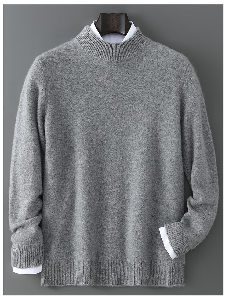 ROMON 2025 new winter double-strand thickened 100% wool sweater men's half-turtleneck sweater loose knitted bottoming sweater medium gray 3XL (185) recommended 160-180Jin Jin equals 0.5 kg