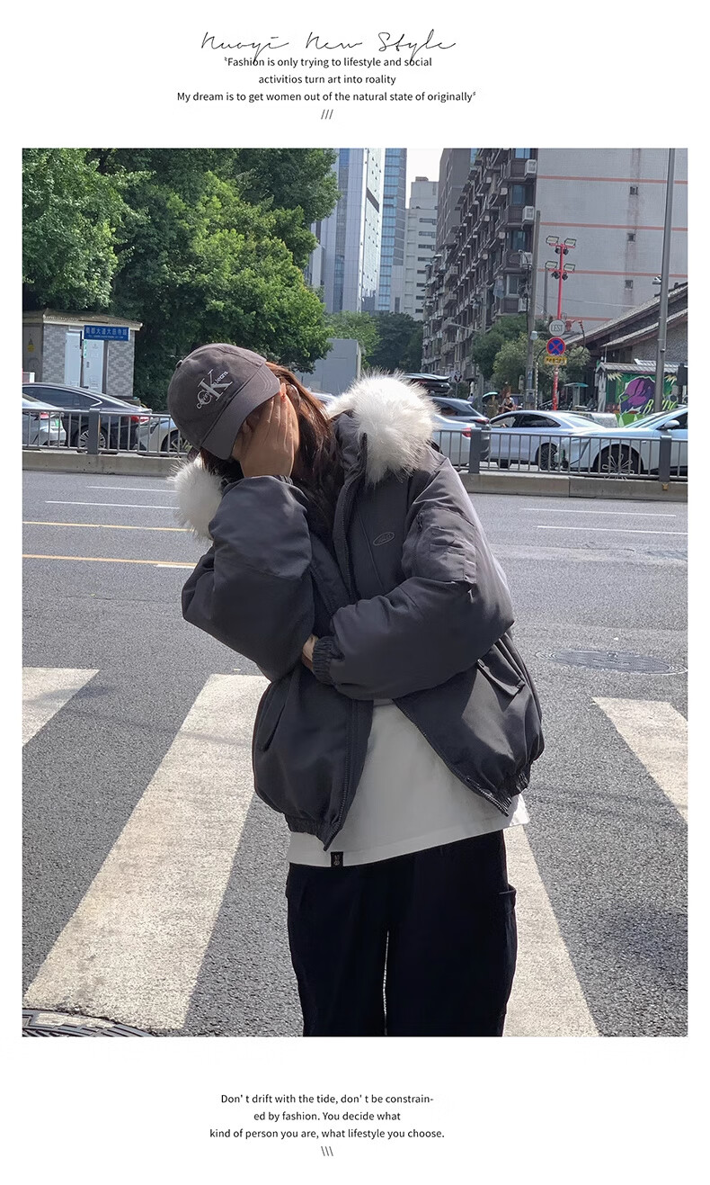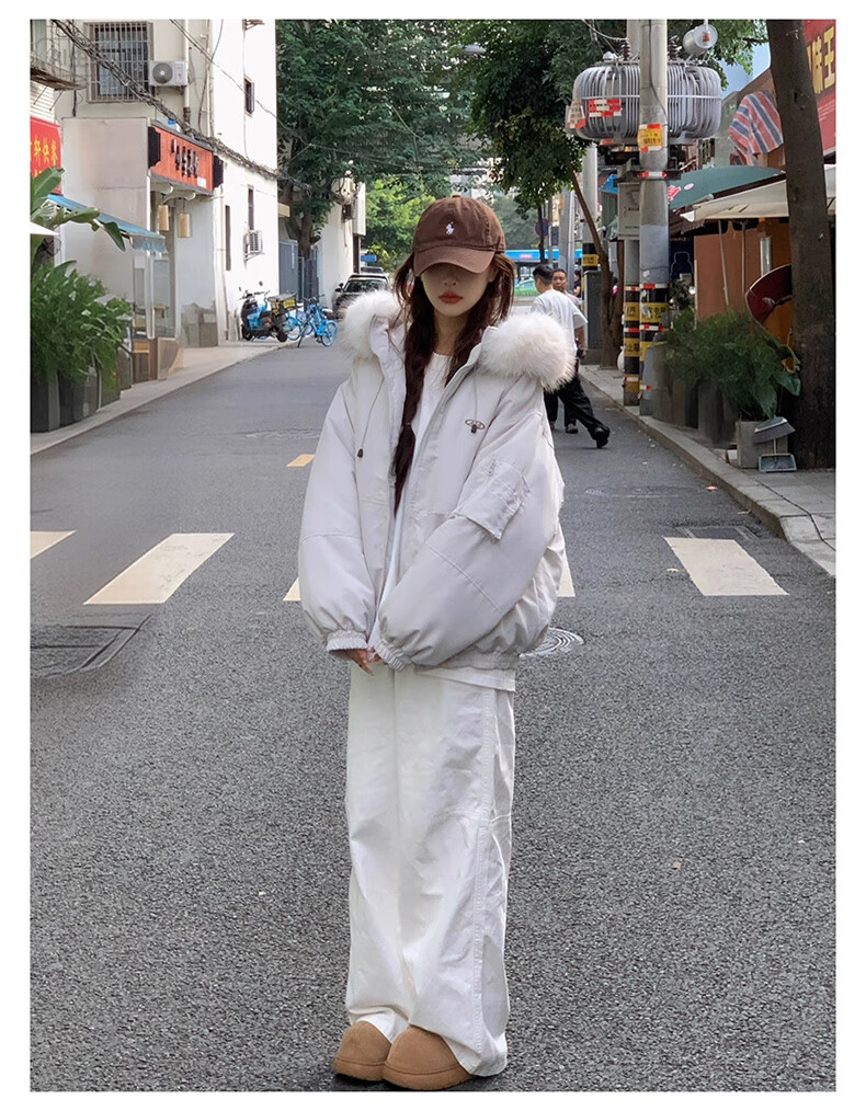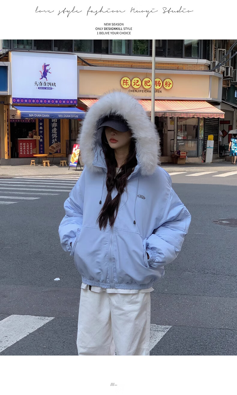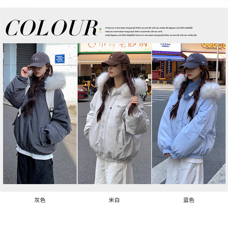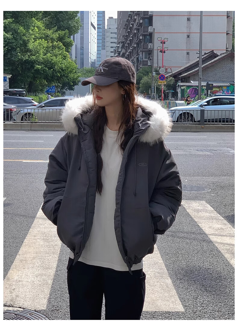 Cotton large fur collar parka cotton jacket for women in autumn and winter new style small cotton jacket loose down jacket down jacket cotton jacket Feng 516 white gray high quality M 105-120Jin Jin equals 0.5 kg