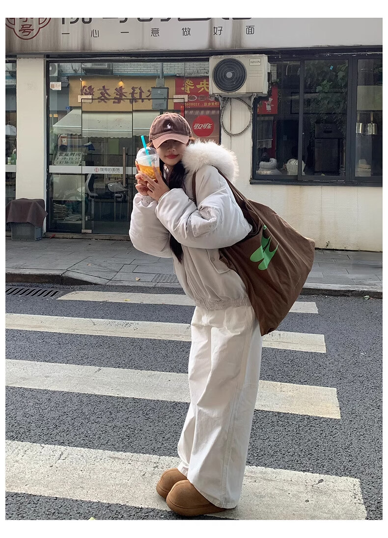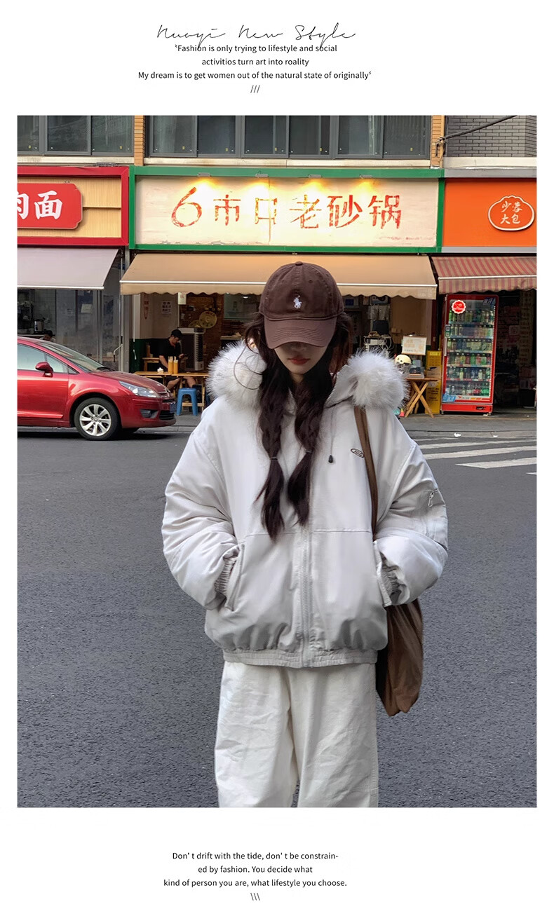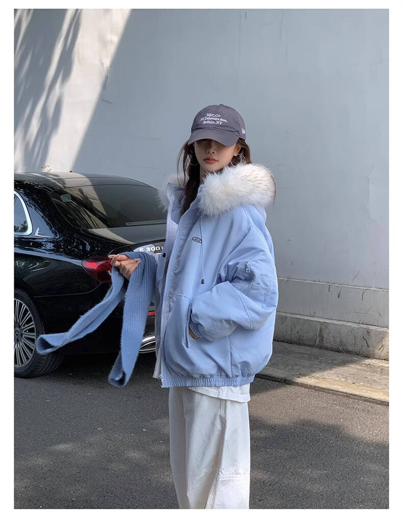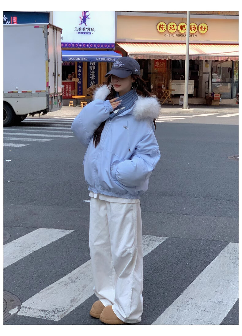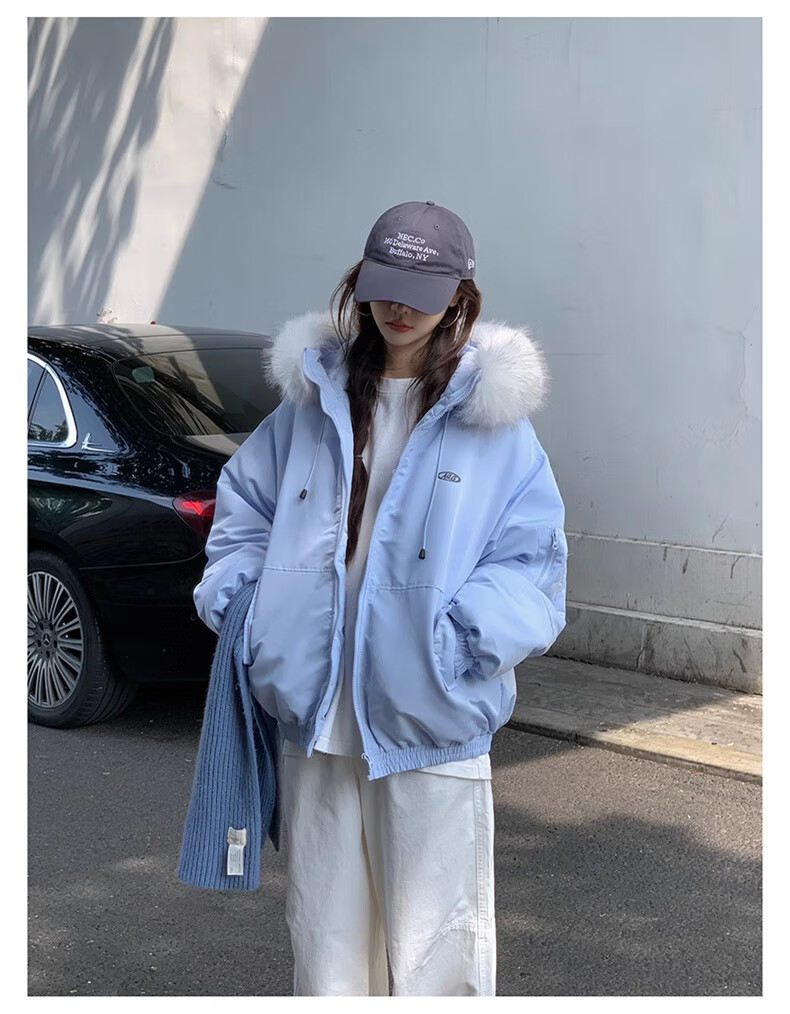 Cotton large fur collar parka cotton jacket for women in autumn and winter new style small cotton jacket loose down jacket down jacket cotton jacket Feng 516 white gray high quality M 105-120Jin Jin equals 0.5 kg