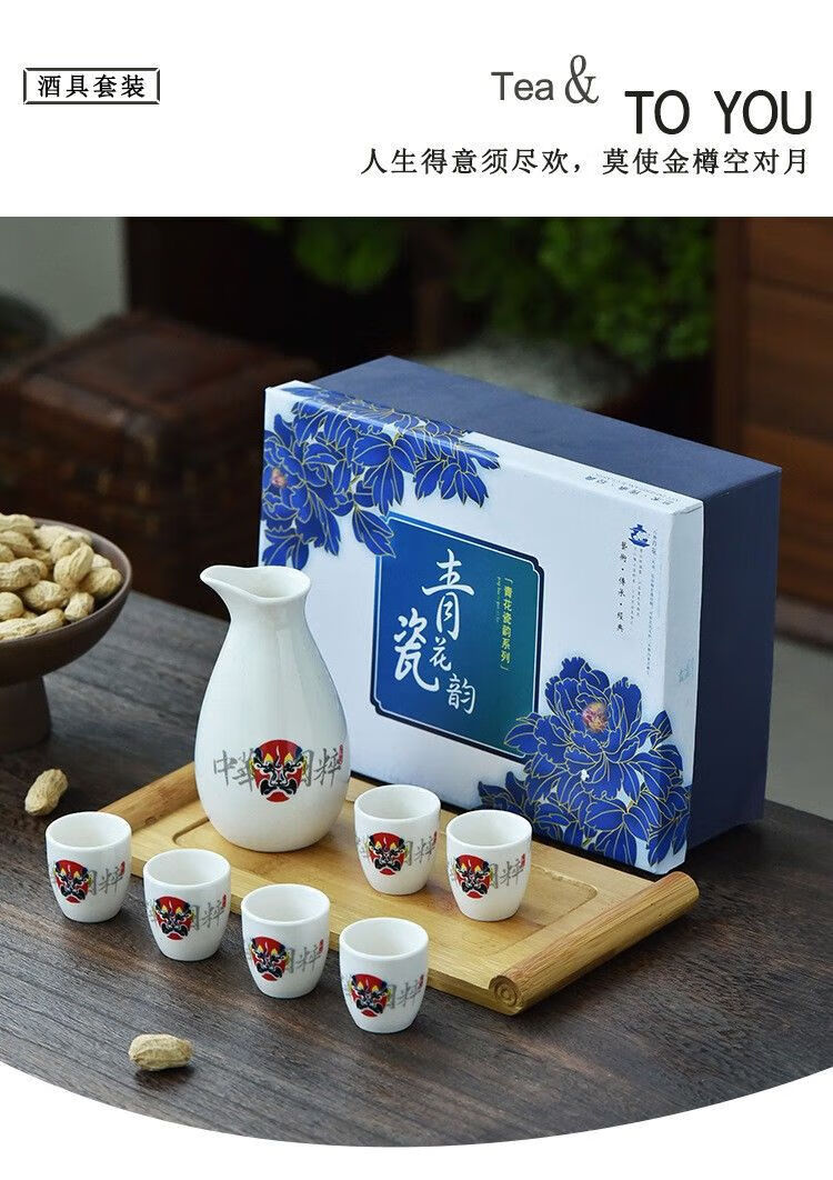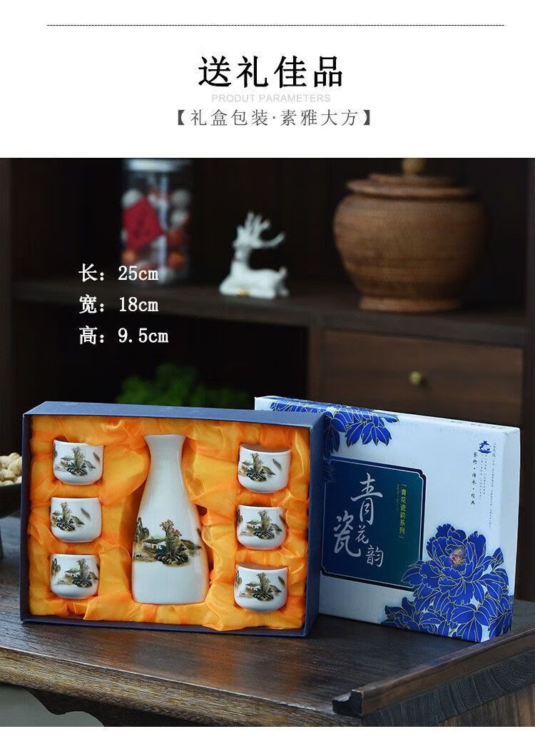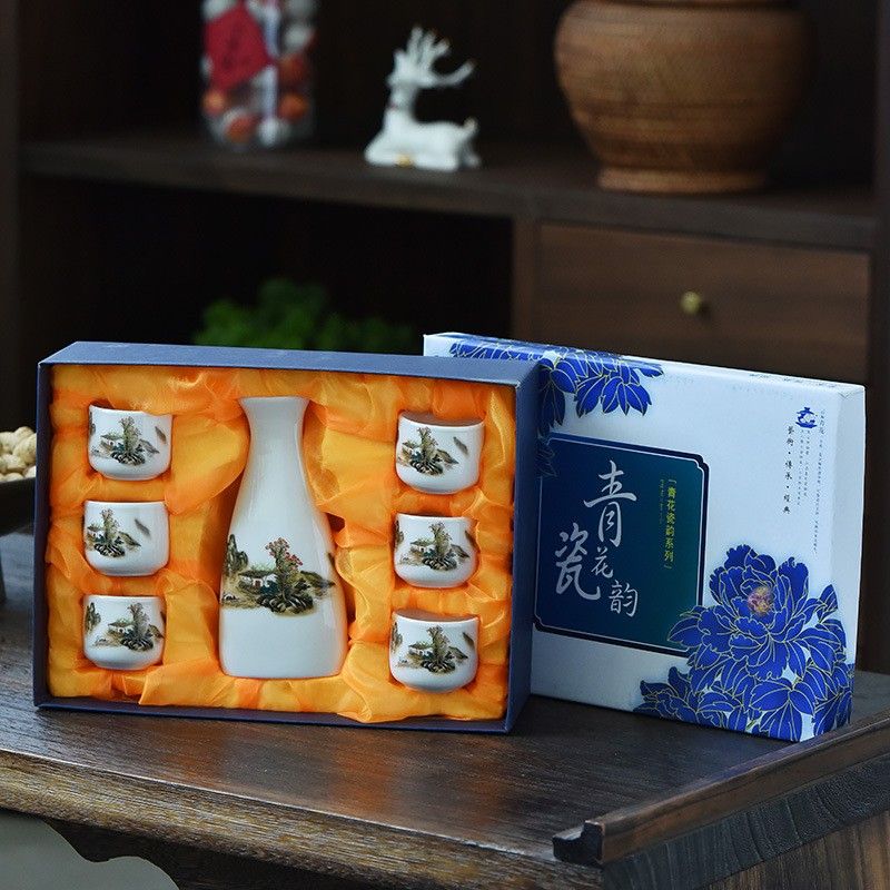 FANCYCHIC antique ceramic wine set, simple wine divider, white wine cup, yellow wine cup, green wine set, Japanese style wine pot, household black bamboo-safe packaging, one pot and two cups