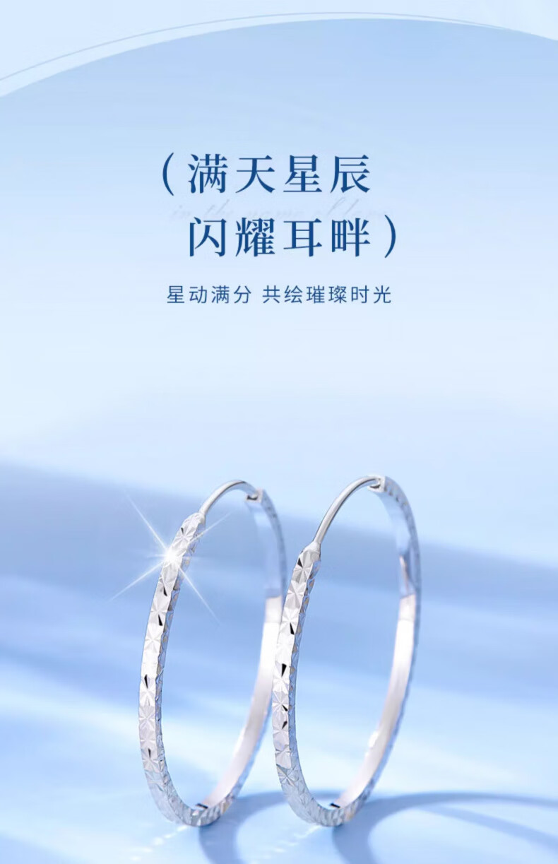 Lao Fengxiang Gypsophila Earrings for Women PT950 Platinum Platinum Large Hoop Ears Anniversary Birthday Gift for Girlfriend and Wife Gypsophila Earrings About 3.2g Brand Gift Box