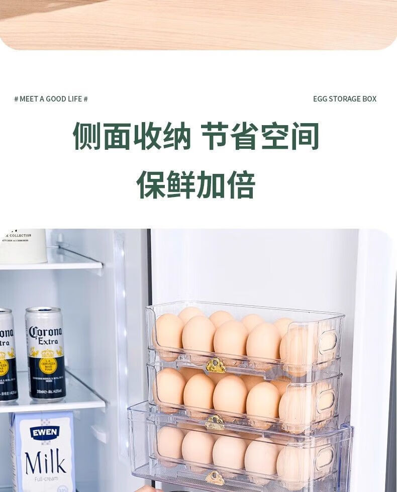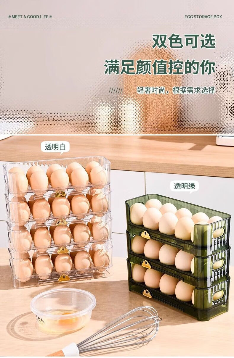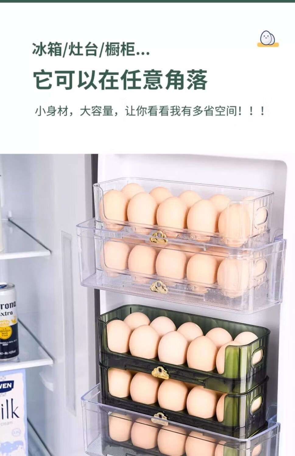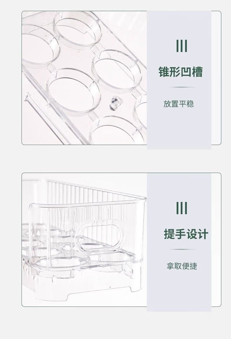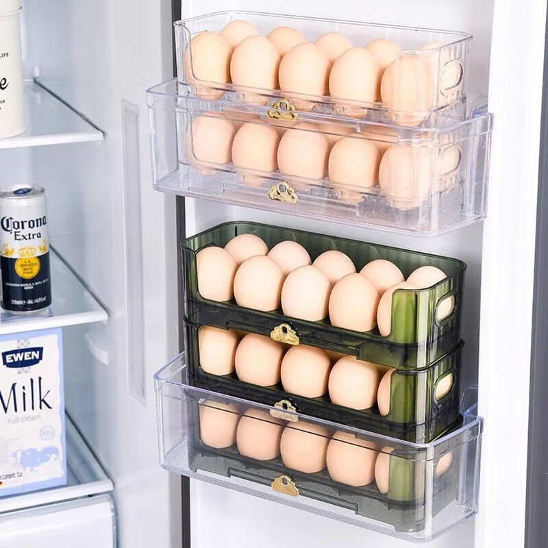 Meikejie egg kitchen refrigerator storage box fresh-keeping and organizing egg carton storage artifact side door egg tray flipping egg rack transparent green deepened egg trough/superimposed design 1 layer can hold 10 eggs/with timer