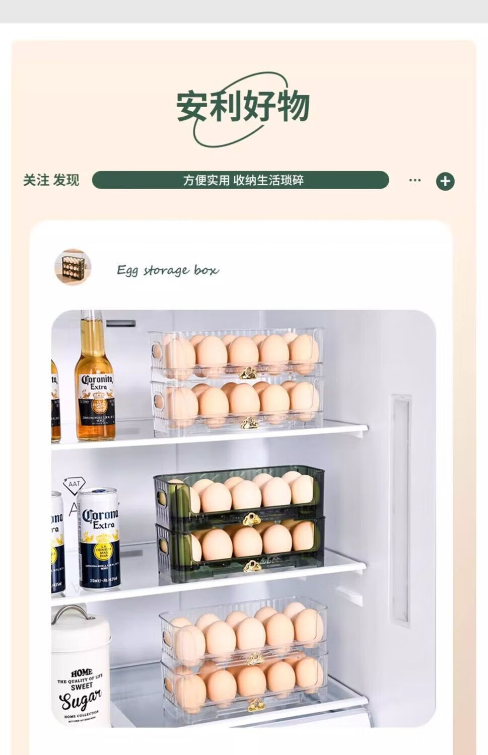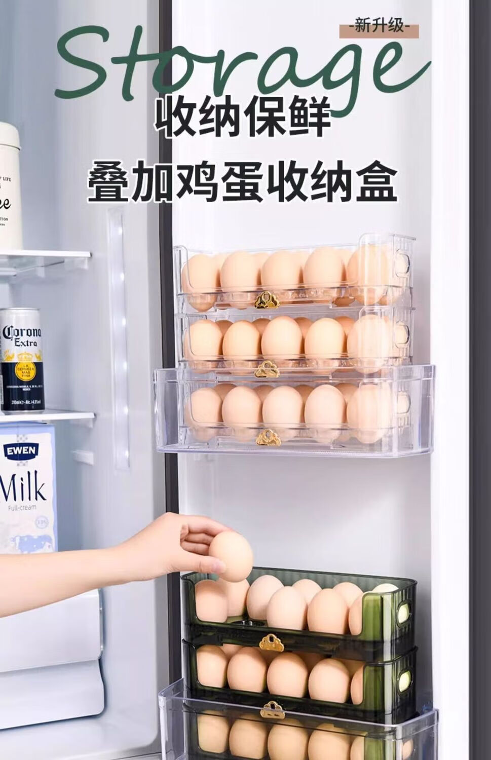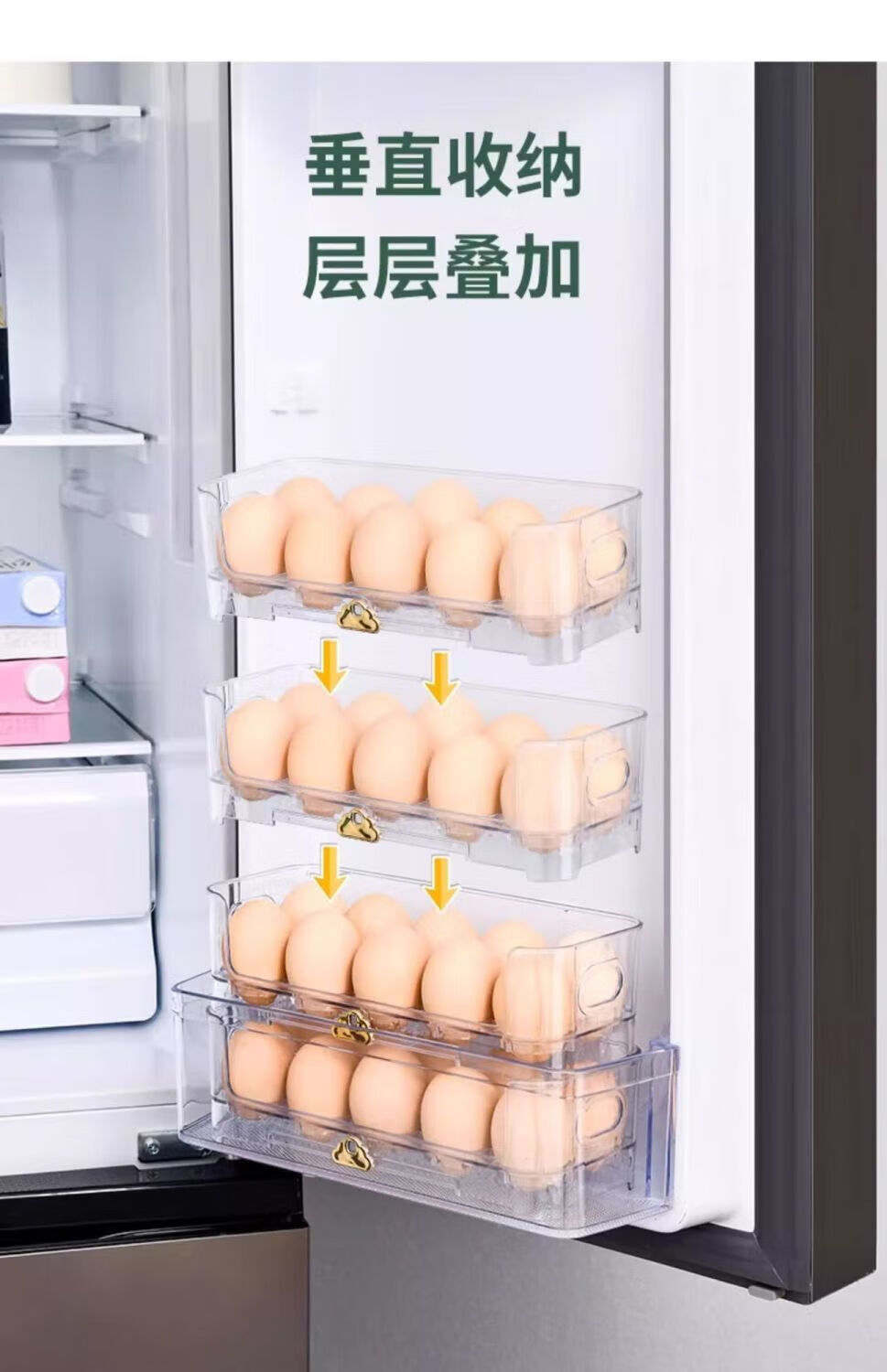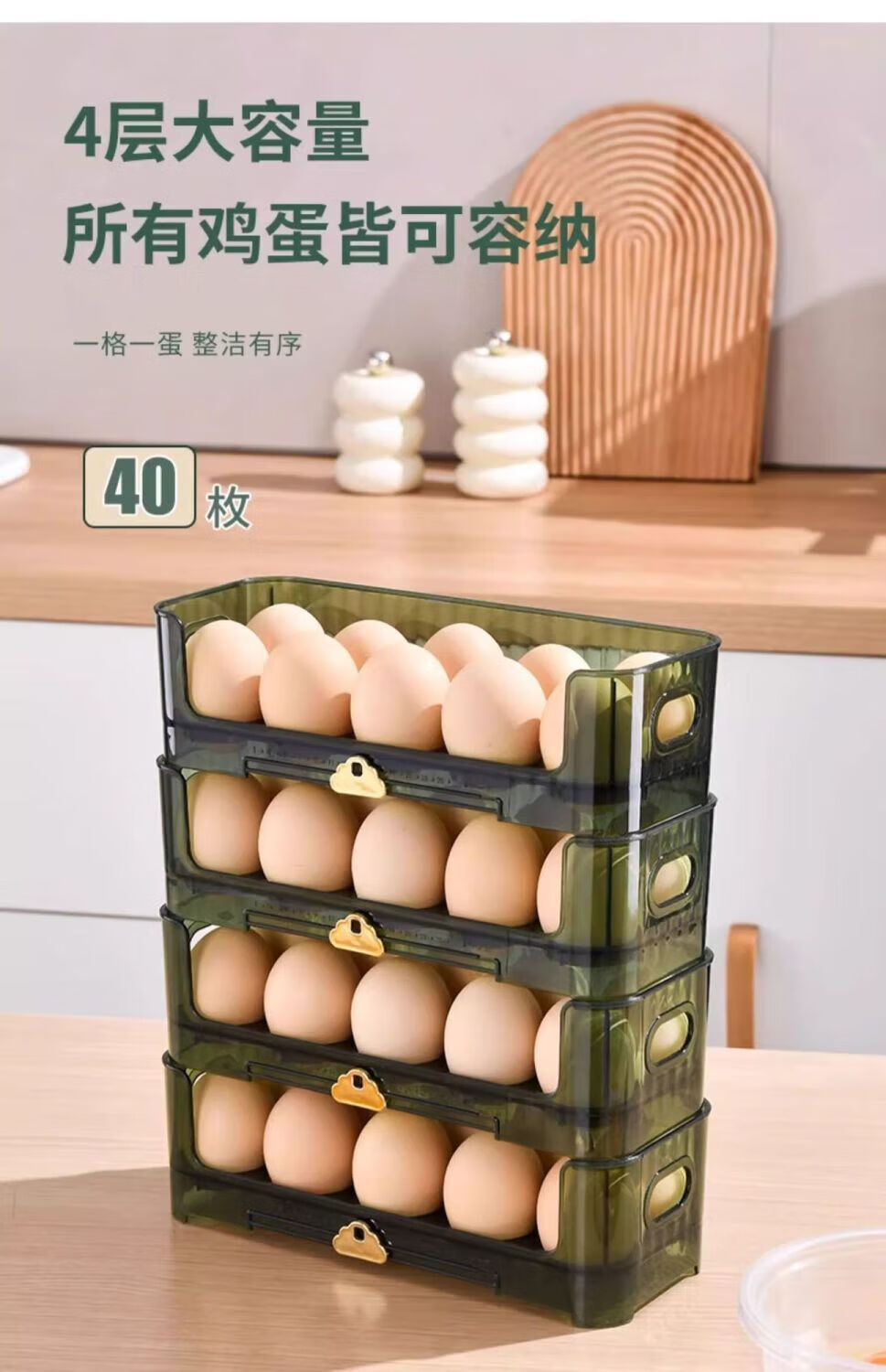 Meikejie egg kitchen refrigerator storage box fresh-keeping and organizing egg carton storage artifact side door egg tray flipping egg rack transparent green deepened egg trough/superimposed design 1 layer can hold 10 eggs/with timer