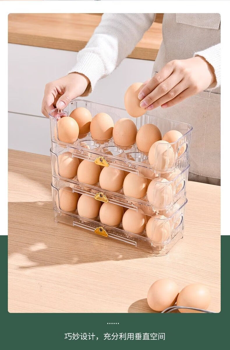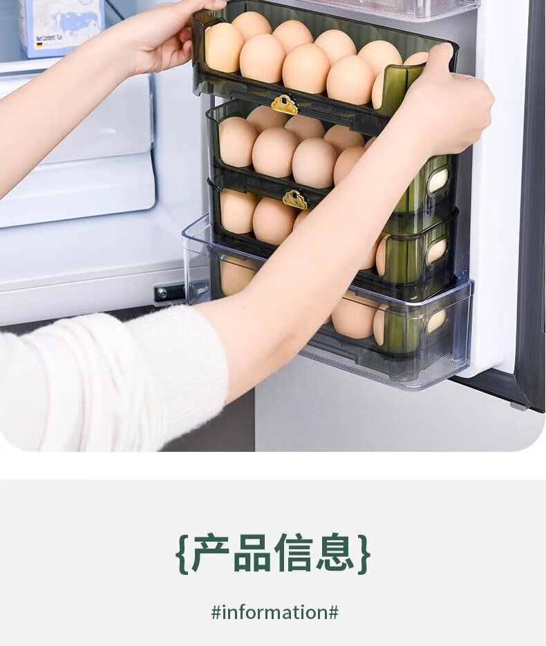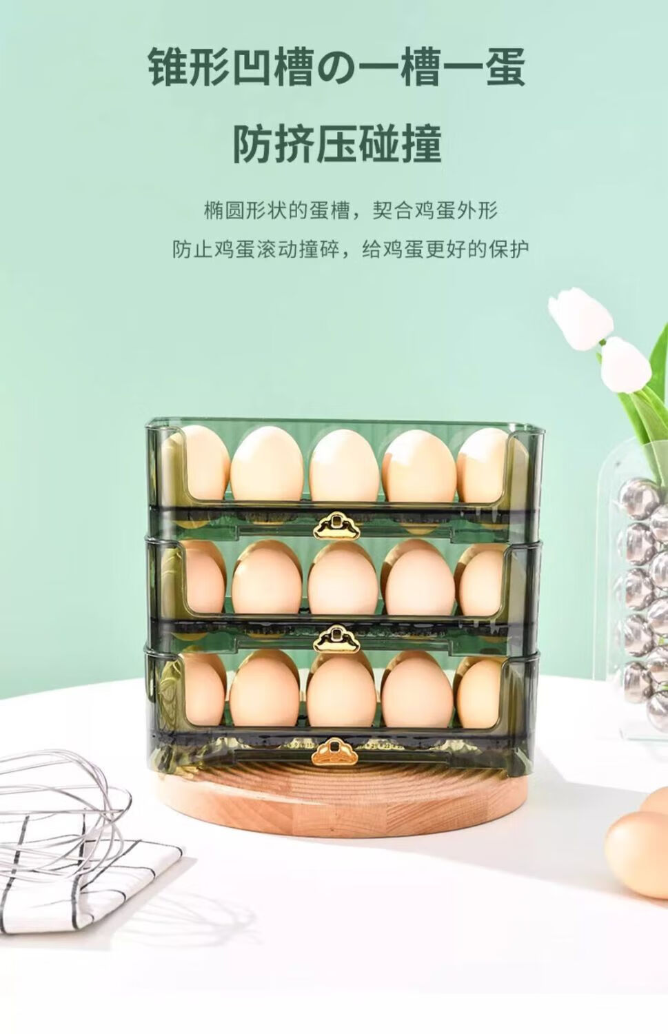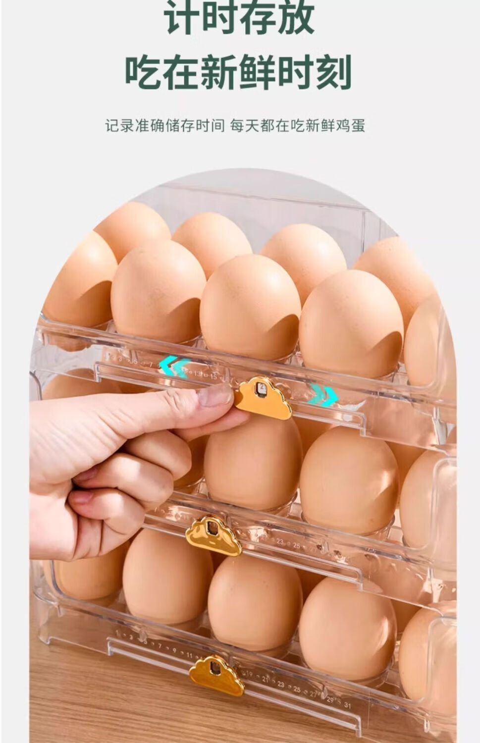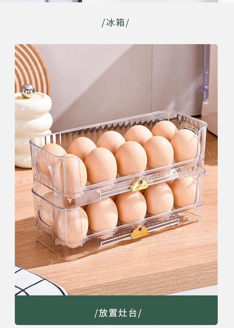 Meikejie egg kitchen refrigerator storage box fresh-keeping and organizing egg carton storage artifact side door egg tray flipping egg rack transparent green deepened egg trough/superimposed design 1 layer can hold 10 eggs/with timer