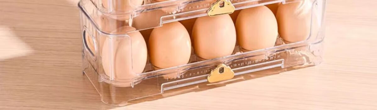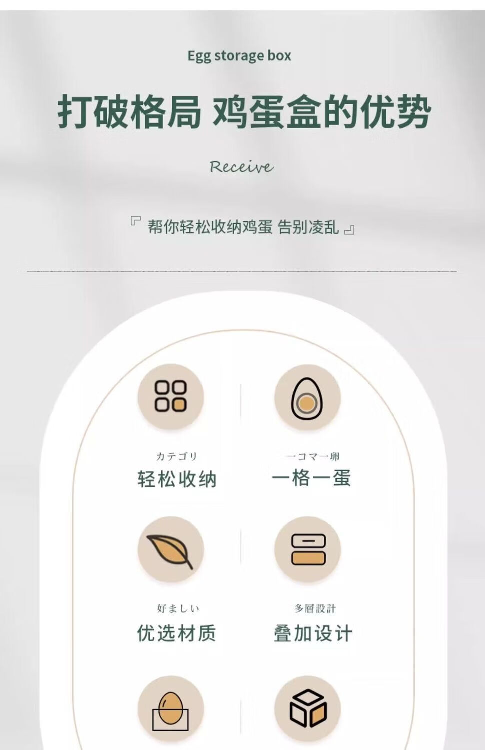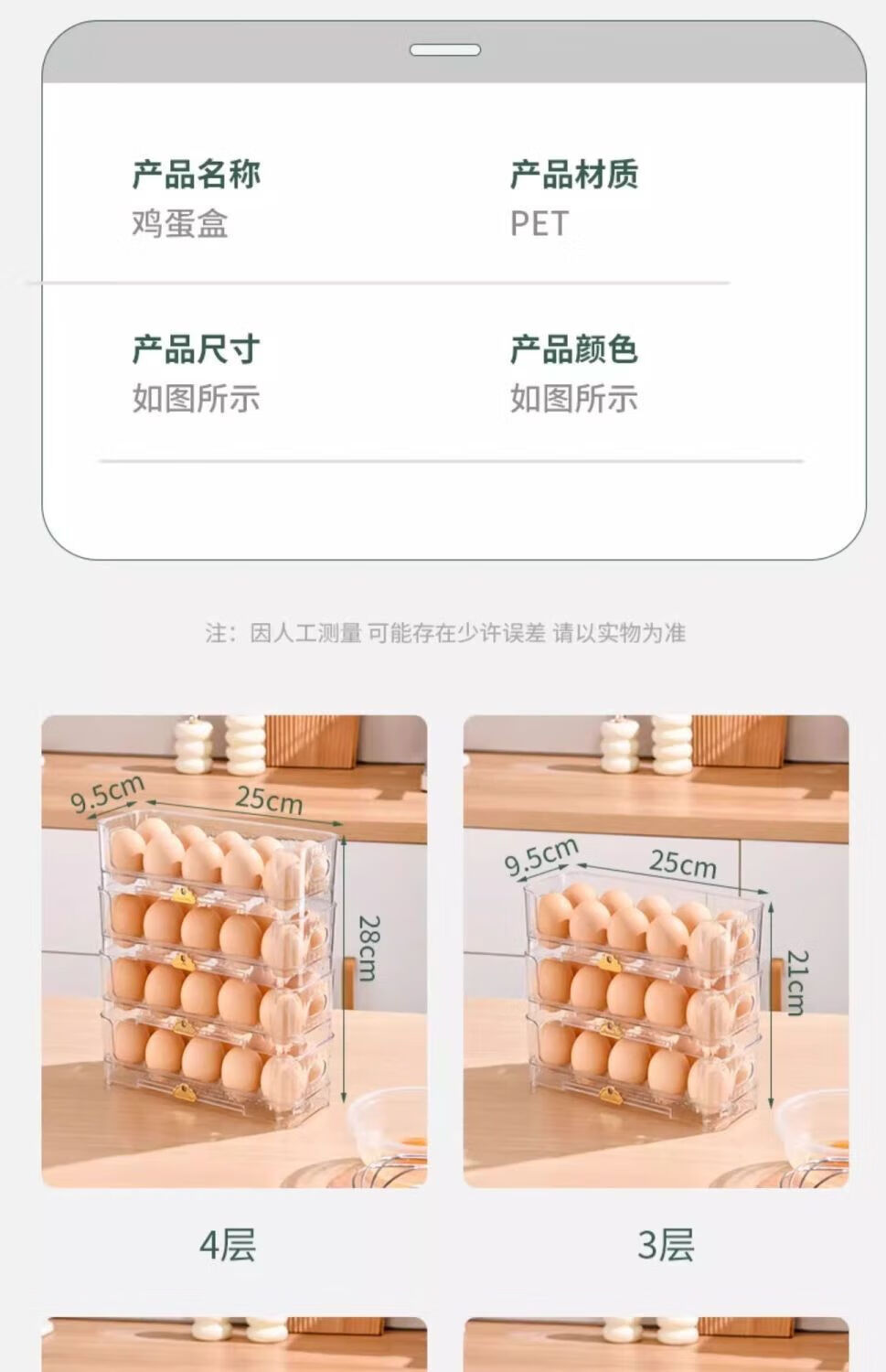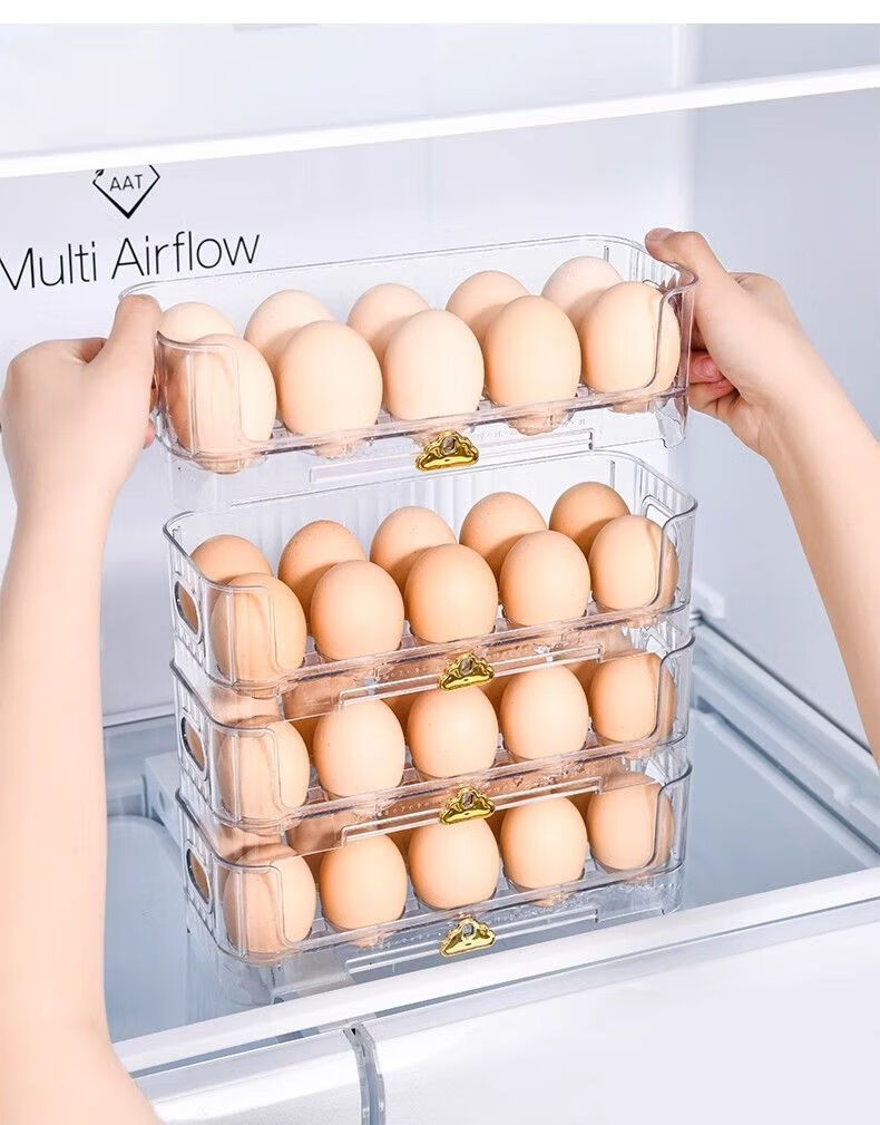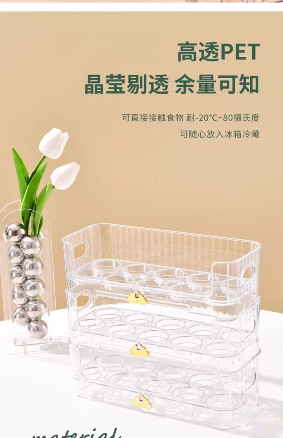 Meikejie egg kitchen refrigerator storage box fresh-keeping and organizing egg carton storage artifact side door egg tray flipping egg rack transparent green deepened egg trough/superimposed design 1 layer can hold 10 eggs/with timer