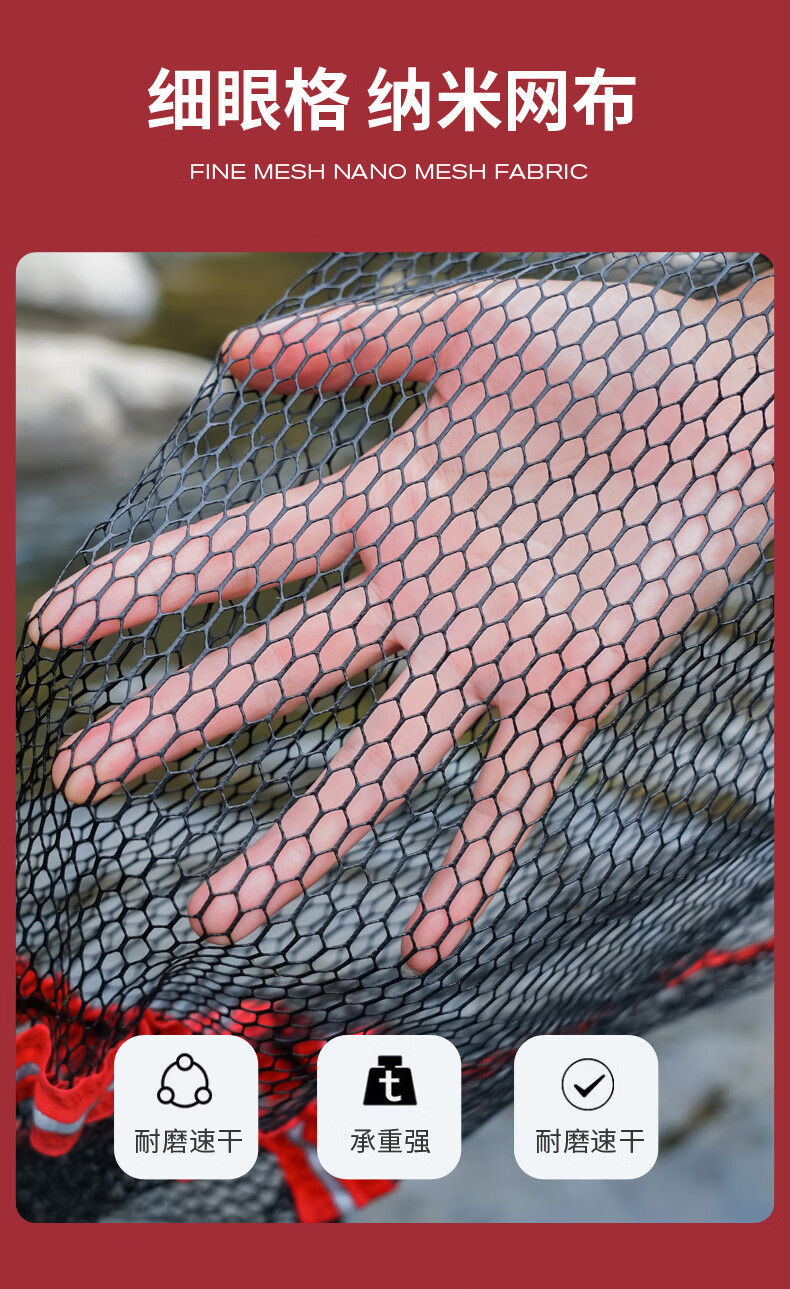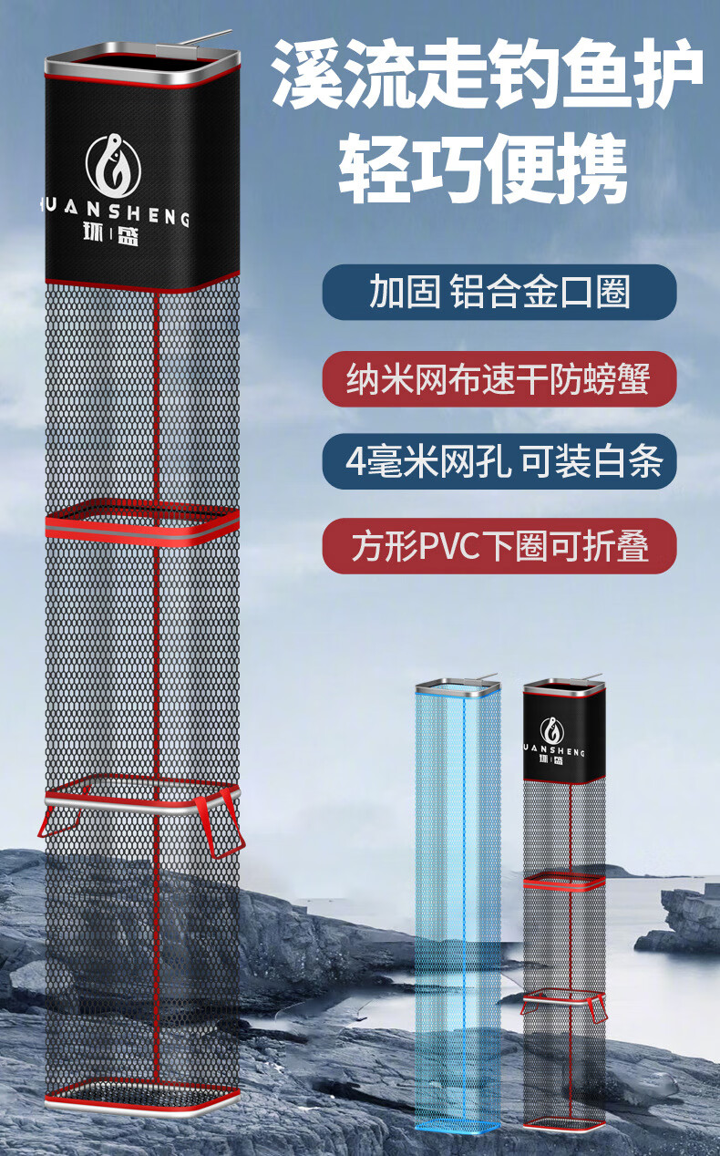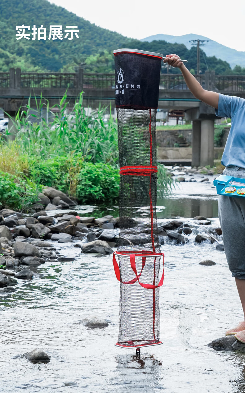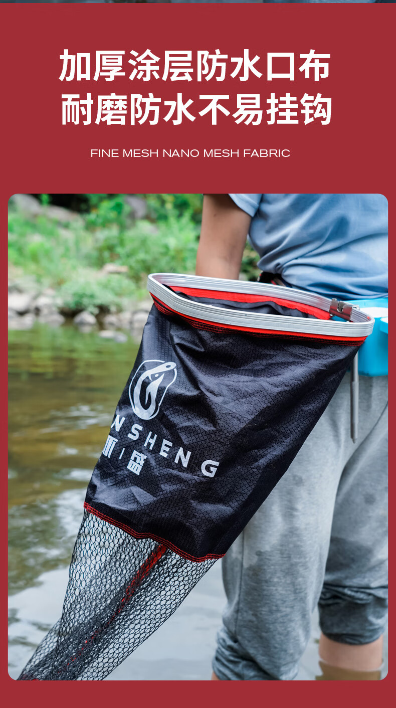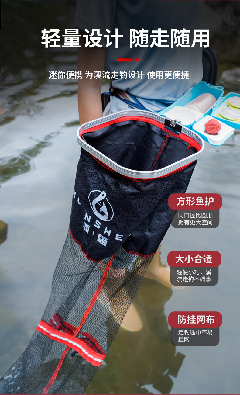 Special fish protection waistband for stream fishing equipment mini small wild fishing hanging glue portable square fishing protection net bag 23.5cm 1.53m square stream fishing protection upgraded version red and black