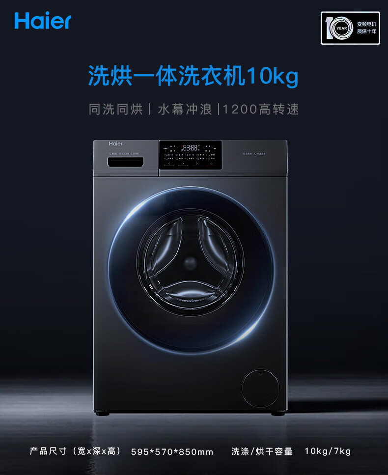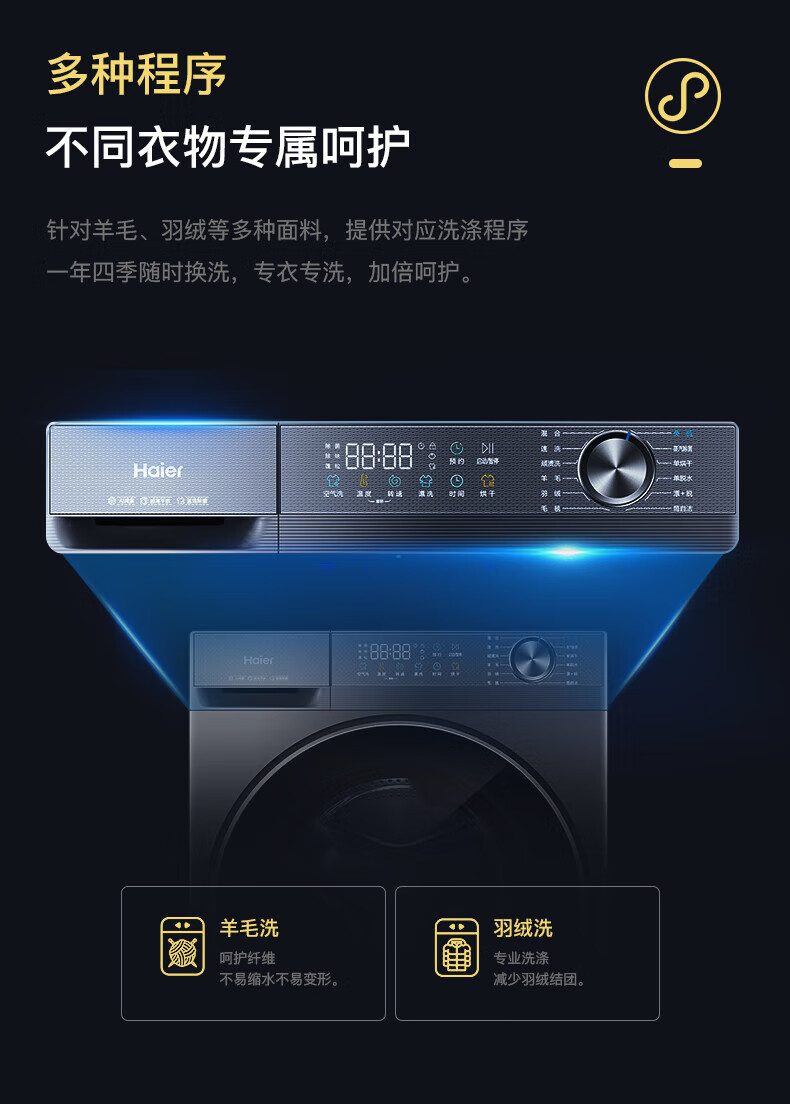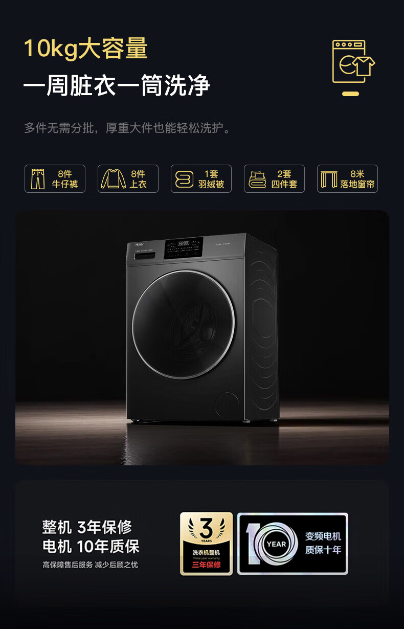 Haier washing machine fully automatic drum washing and drying machine drum belt drying 10 kg household ultra-thin first-class energy-efficiency washing machine national subsidy old for new gold list top seller + air washing + soft wool washing + washing and drying