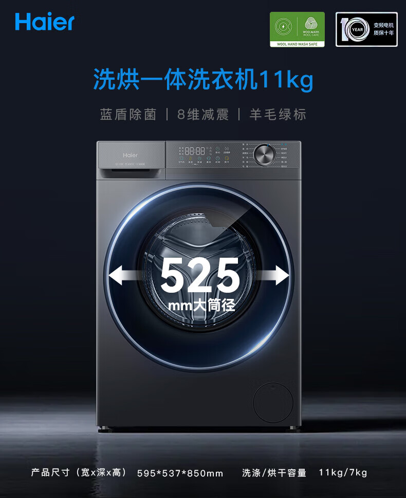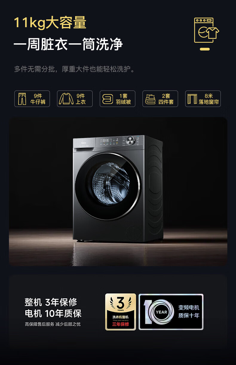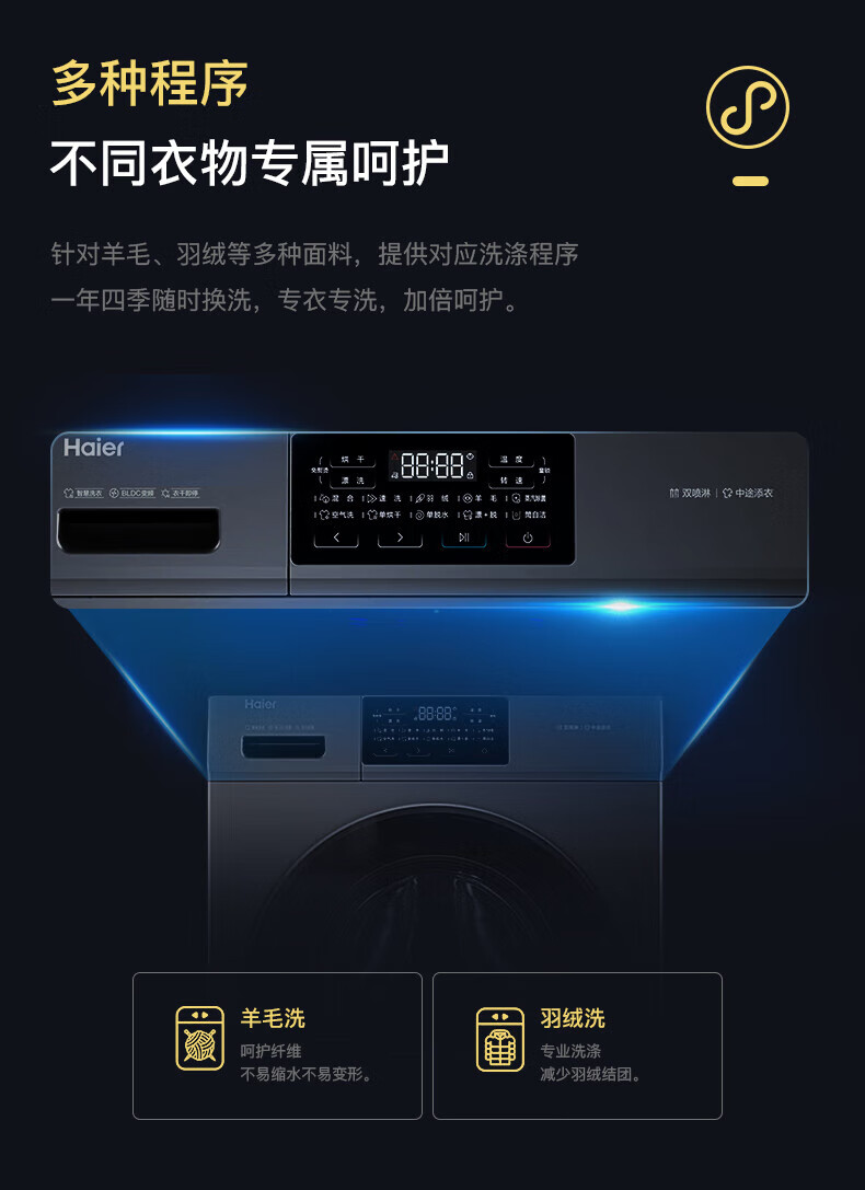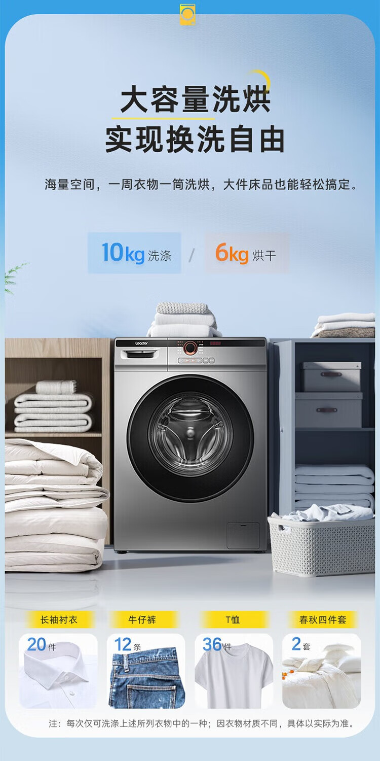 Haier washing machine fully automatic drum washing and drying machine drum belt drying 10 kg household ultra-thin first-class energy-efficiency washing machine national subsidy old for new gold list top seller + air washing + soft wool washing + washing and drying